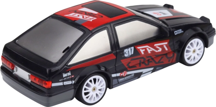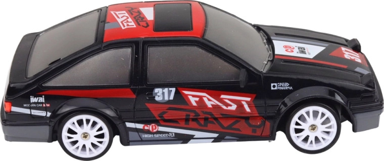 Športni RC avto z nizkim podvozjem, aerodinamično karoserijo in izrazitimi dirkaškimi nalepkami ponuja odlično razmerje med velikostjo in zmogljivostjo. Zahvaljujoč frekvenci 2,4 GHz lahko vozite brez motenj tudi z več vozili hkrati, natančno upravljanje pa omogoča tekoče drifte in dinamične manevre.