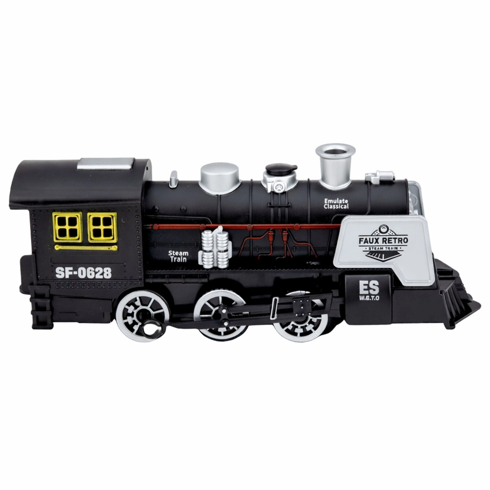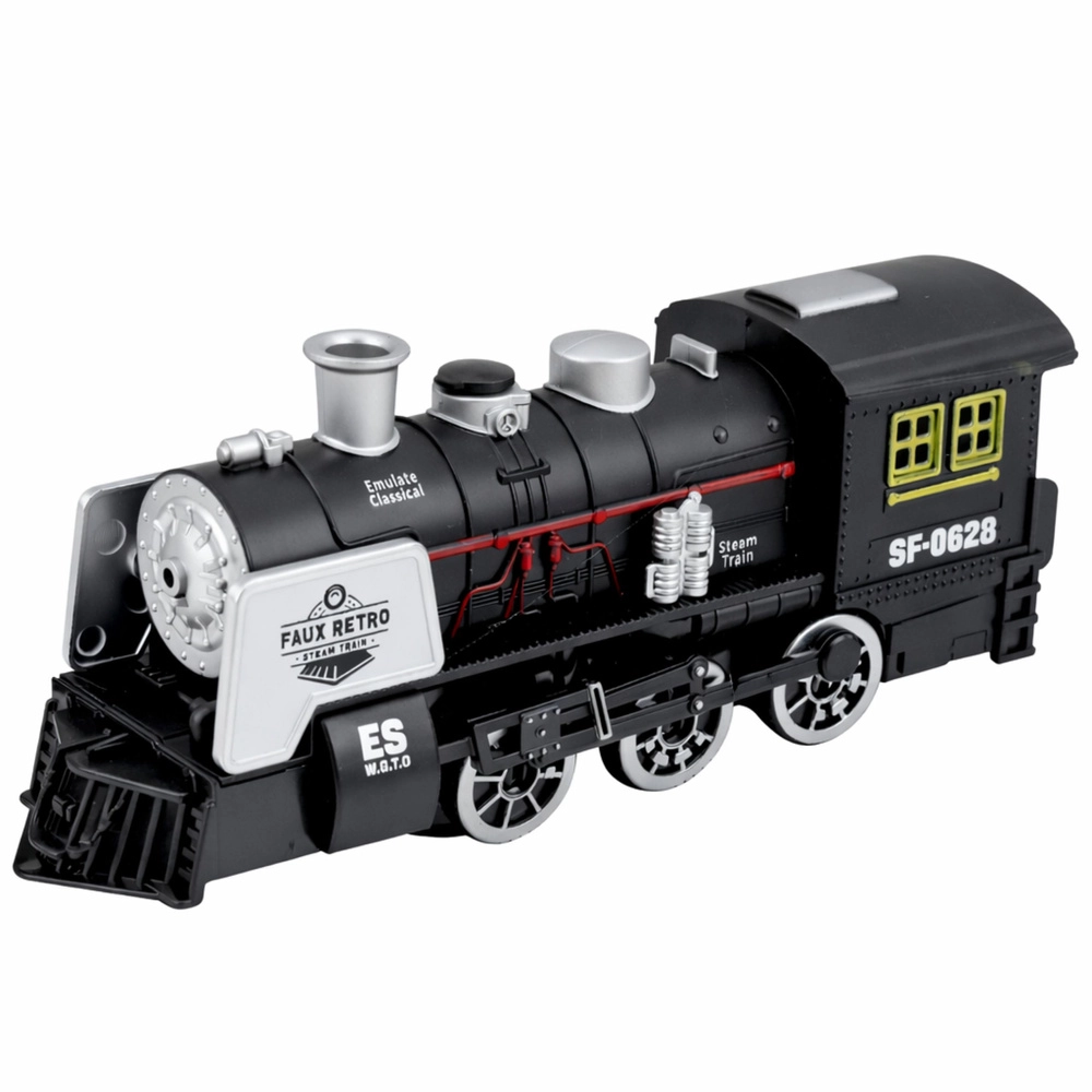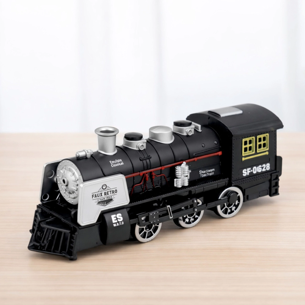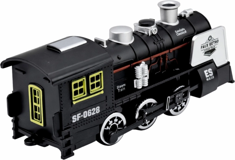 Elegantna črna parna lokomotiva, navdahnjena s klasičnimi parnimi stroji, prinaša realistično zabavo za otroke. Ponuja zvočne učinke, imitacijo dima in tipalo za ovire, ki samodejno spremeni smer vožnje. Podrobnosti, kot so izrazita kolesa, dimnik in stranske cevi, poudarjajo avtentičen dizajn ter trpežno plastično izdelavo.