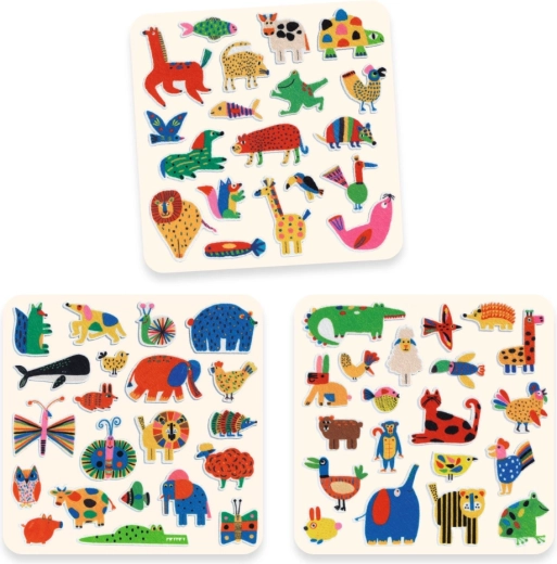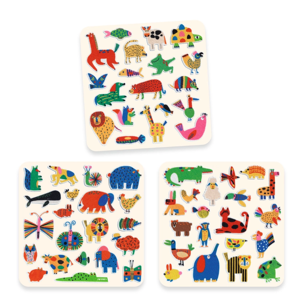 Komplet Djeco nalepk Živali vsepovsod prinaša zabavne motive živalic, ki jih otroci obožujejo. Preprosto in nežno lepljenje omogoča večkratno lepljenje ter enostavno rokovanje brez trganja papirja. Otroci tako urijo koordinacijo oko–roka in širijo besedišče ob spoznavanju živali.