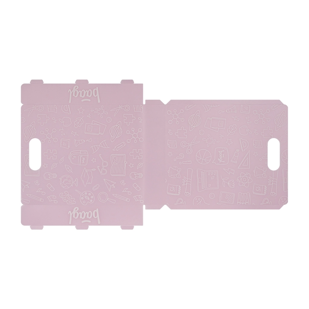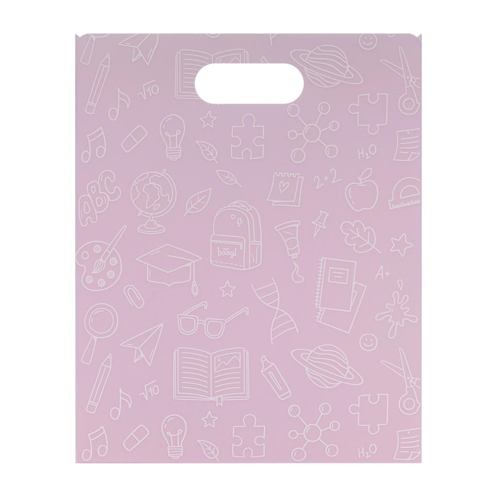 Urejeni šolski materiali brez zmečkanih robov – rožnate plastične mape Baagl so zanesljiv pomočnik za vsakega šolarja. Izdelane so iz 100 % recikliranega polipropilena, zato so ne le trpežne, temveč tudi prijazne do okolja. Prosojna izvedba omogoča hitro najti potrebne zvezke in liste brez nepotrebnega premetavanja.