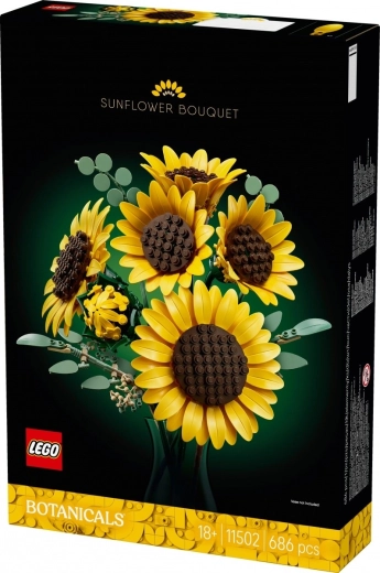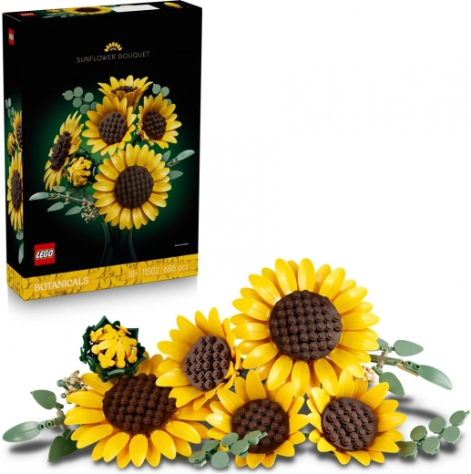 Ustvarite doma sončno vzdušje s šopkom sončnic iz kolekcije LEGO Botanicals. Sestavili boste popk, tri cvetoče in dva povsem razcvetela cvetova, ki jih dopolnjujejo štiri evkaliptova stebla. Zaradi premišljenih gradnikov imajo cvetovi verne oblike cvetnih listov in teksturirana središča, stebla in liste pa je mogoče preprosto postavljati za popolno kompozicijo v vazi.