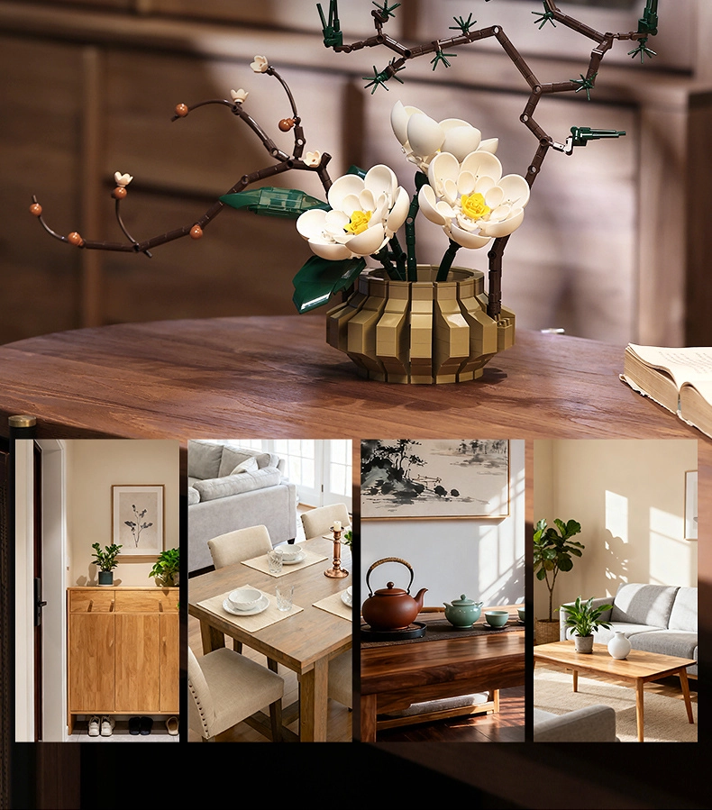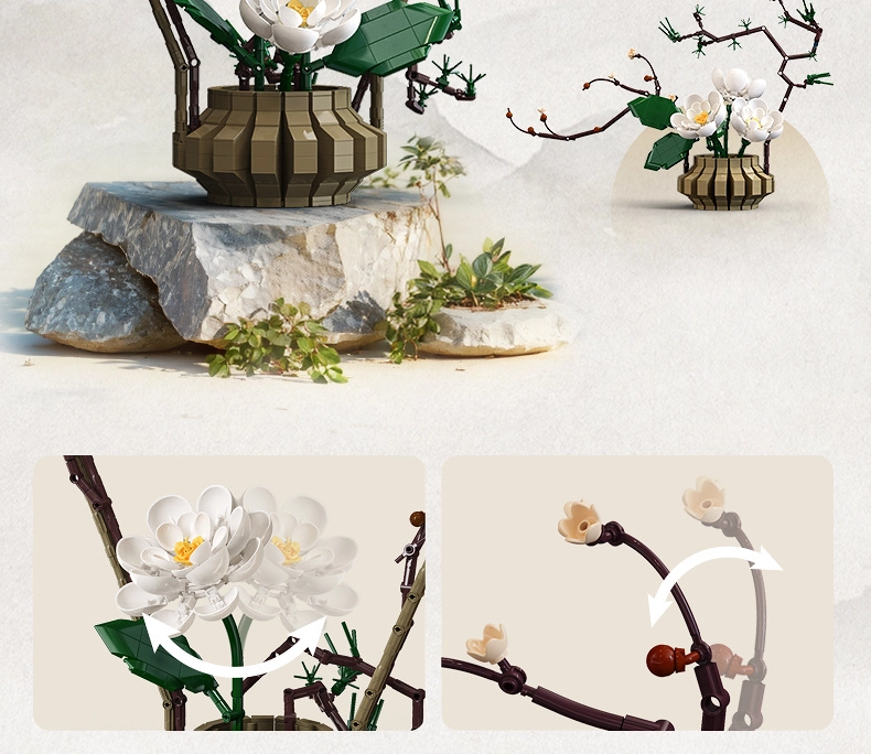 Model iz 1001 kosa ponuja realističen videz cvetov in stabilen aranžma v dekorativnem lončku. Po dokončanju izstopa v dnevni sobi, spalnici in delovni sobi ter postane učinkovit okras, ki poživi vsak prostor.