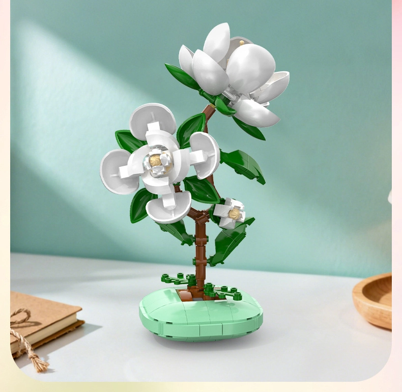 Odkrijte čar botanične serije CaDA in sestavite si kamelijo v lončku, ki bo polepšala vašo mizo ali polico. Zahvaljujoč premišljenim podrobnostim – od elegantnih venčnih listov do oblikovanih listov – deluje model realistično in postane opazen dodatek vsakega interierja.