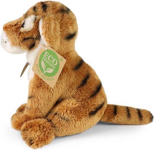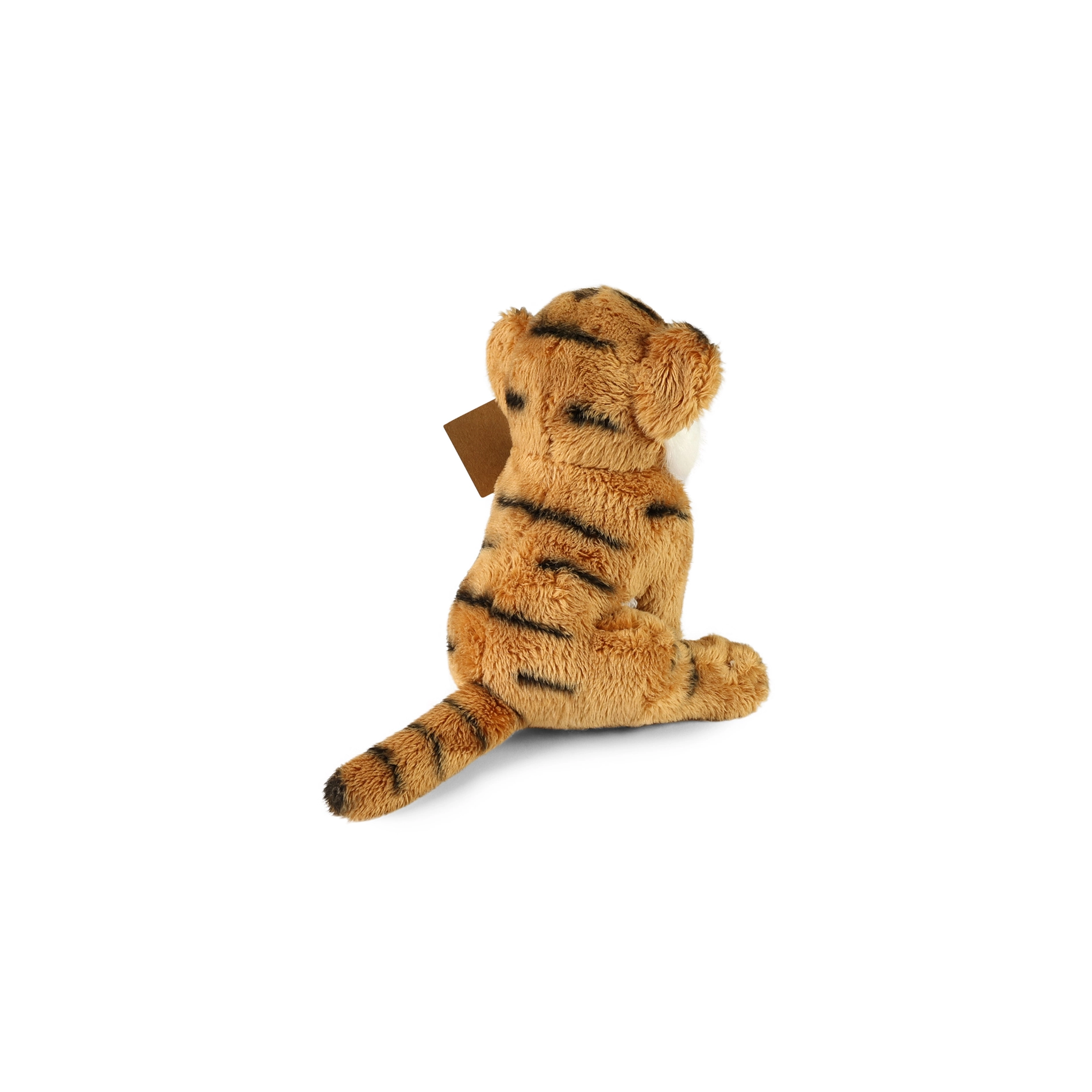 Ta sedeči plišasti tiger je popoln ljubkovalec za vsakodnevno crkljanje, igro ali kot stilska dekoracija v otroški sobici. Odlikujeta ga realističen videz, skrbno šivanje in mehka kožica s tipičnimi črtami. Lahkotno, mehko polnilo zagotavlja udobno držanje in varnost za dojenčke.