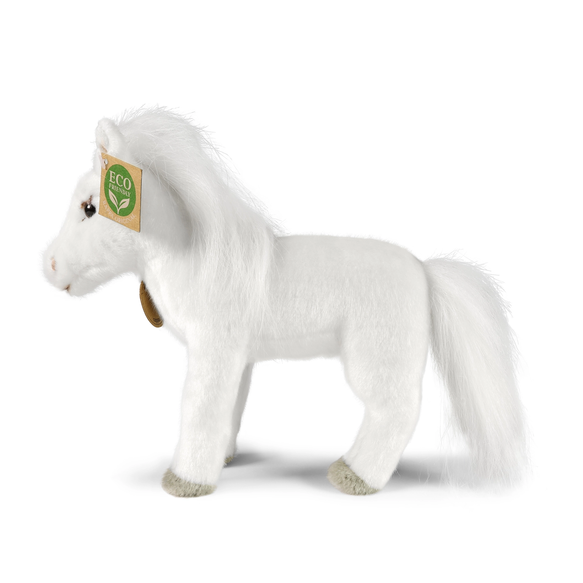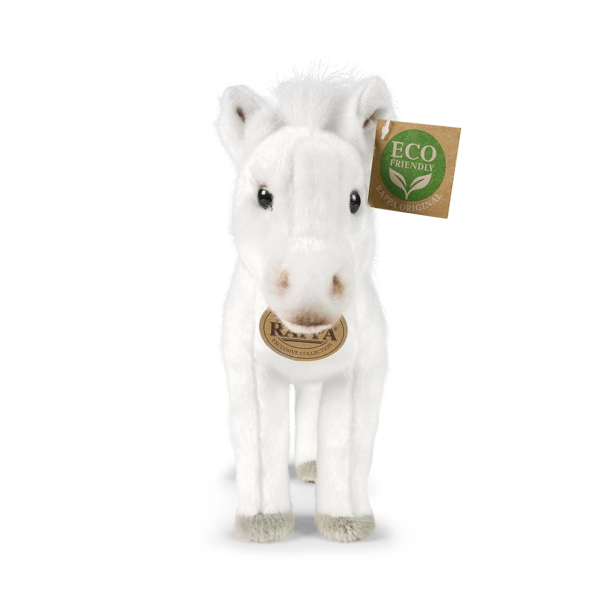 Ljubek bel plišasti konj višine 24 cm iz trajnostne kolekcije RAPPA razveseli tako otroke kot odrasle. Izjemno mehak, realistično izdelan in polnjen iz recikliranih materialov. Zahvaljujoč ročni izdelavi deluje živahno, je varen od rojstva in odličen za crkljanje in domišljijsko igro.