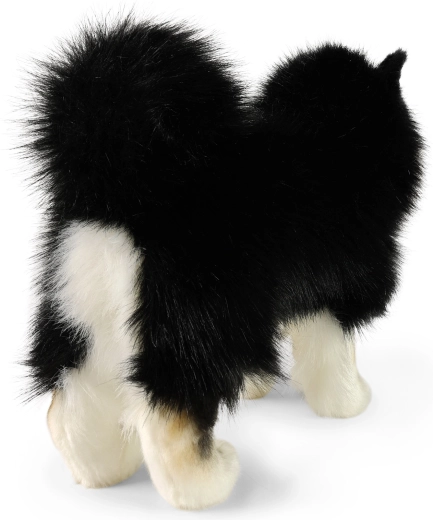 Podrobnosti kožuha, obarvanost in oblika telesa so ročno dodelane, da plišasti pes deluje čim bolj verno pravemu lapinkoiŕi.