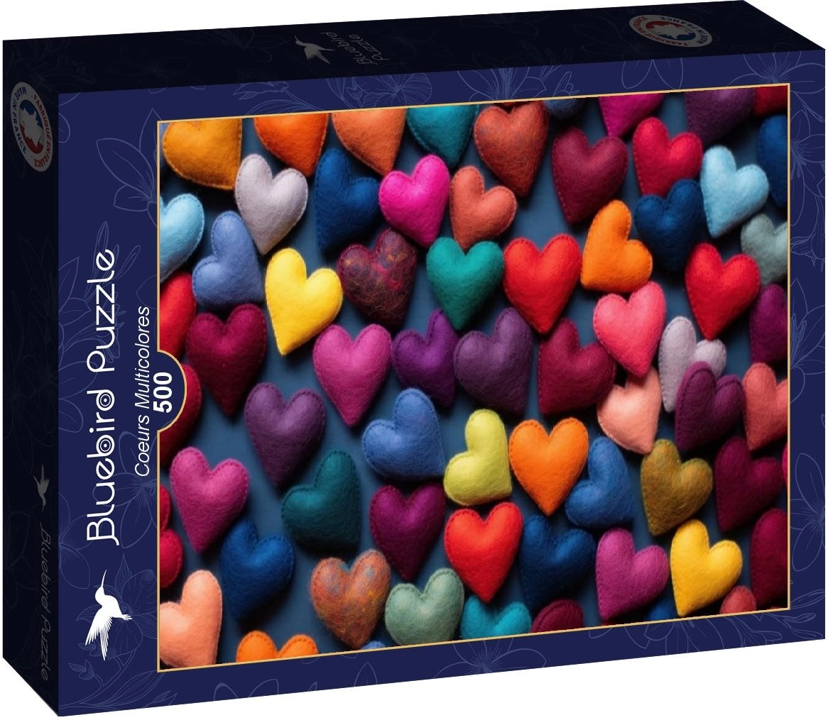 Ta sestavljanka z motivom barvitih src bo razveselila vse ljubitelje sprostitve in družinske zabave. S 500 koščki ponuja prijeten izziv za eno popoldne, po sestavitvi pa ustvari sliko velikosti 47,8 × 34,2 cm, primerno tudi za uokvirjanje.