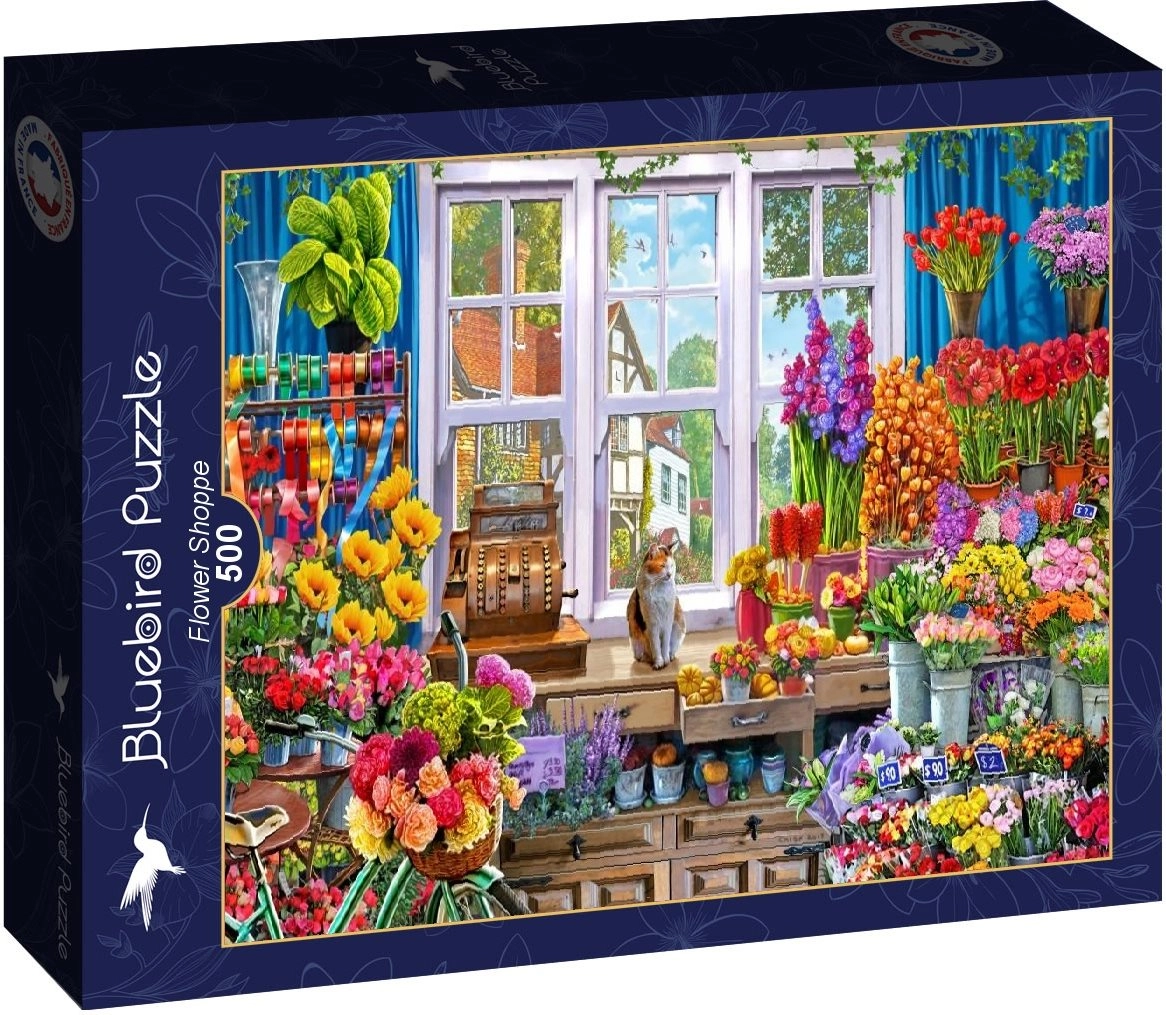 Uživajte v sprostitvi z lepim motivom cvetličarne na kakovostni sestavljanki s 500 kosi znamke BLUEBIRD. Natančen izsek, žive barve in prijeten format so idealni za mirno sestavljanje doma. Končan motiv meri približno 47,8 × 34,2 cm in je odlična izbira za uokvirjanje.