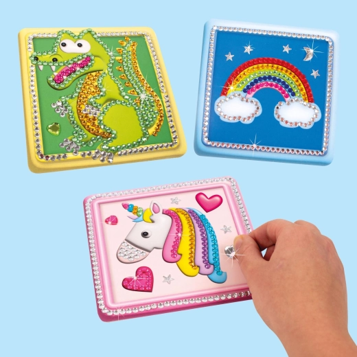 Odkrijte čar diamond paintinga in spremenite proste trenutke v ustvarjalno doživetje. Ta set prinaša tri motive na trdnih predlogah velikosti 18 × 21 cm ter vse dodatke, ki jih potrebujete za udobno lepljenje kamenčkov. Zaradi preprostega postopka je primeren za začetnike in otroke pod nadzorom odraslih.