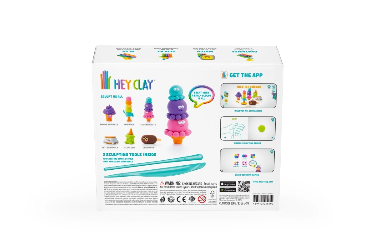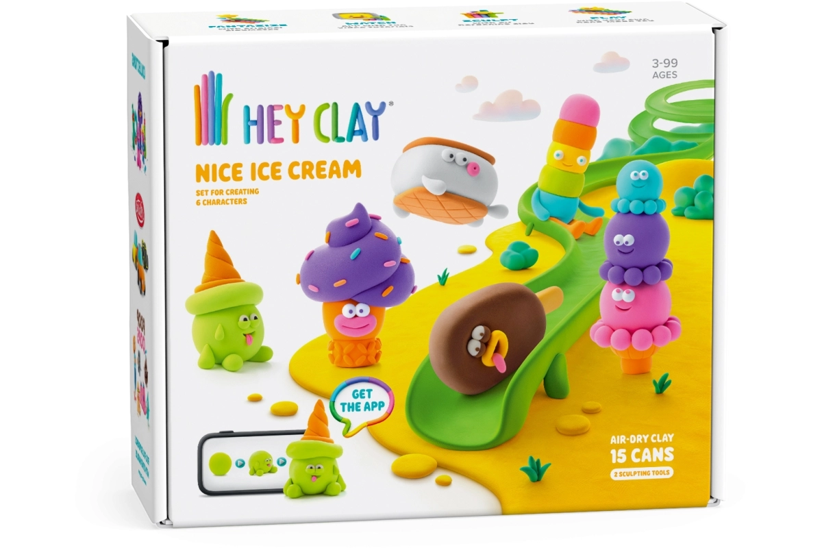 Komplet Hey Clay Sladoled prinaša svež odmerek ustvarjalnosti za male in velike ustvarjalce. Zahvaljujoč lahki, barviti in samostrjevalni masi si otroci preprosto izdelajo izvirne sladoledne figurice, ki po sušenju ohranijo obliko in lahko služijo kot dekoracija ali darilo.