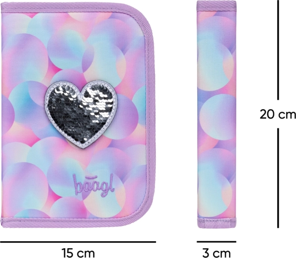 Šolski set BAAGL Ergo Candy je zasnovan za maksimalno udobje, red in varnost. Ergonomsko oblikovana aktovka s trdim dnom ohranja stabilno obliko, nizka masa, ki ne presega 1200 g, razbremeni hrbet, vodoodporen material pa ščiti šolske potrebščine v vsakem vremenu. Intuitivno magnetno zapiranje Fidlock otrokom omogoča hitro odpiranje in zapiranje z eno roko.