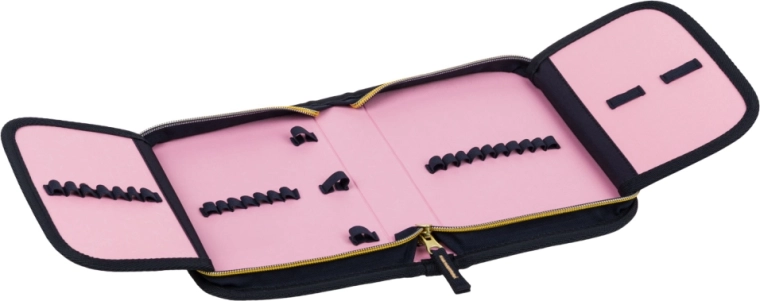 Enonadstropna peresnica z dvema preklopoma je opremljena s kakovostno zadrgo YKK, ima žepek za drobnarije, okence za urnik in močne elastike, primerne tudi za trikotne barvice. Vrečka z vzdržljivimi vrvicami in karabinčkom se preprosto pripne na aktovko, otroški predpasnik iz pralnega materiala ščiti oblačila pri ustvarjanju, denarnica za okrog vratu pa varno hrani drobnarije pri roki.