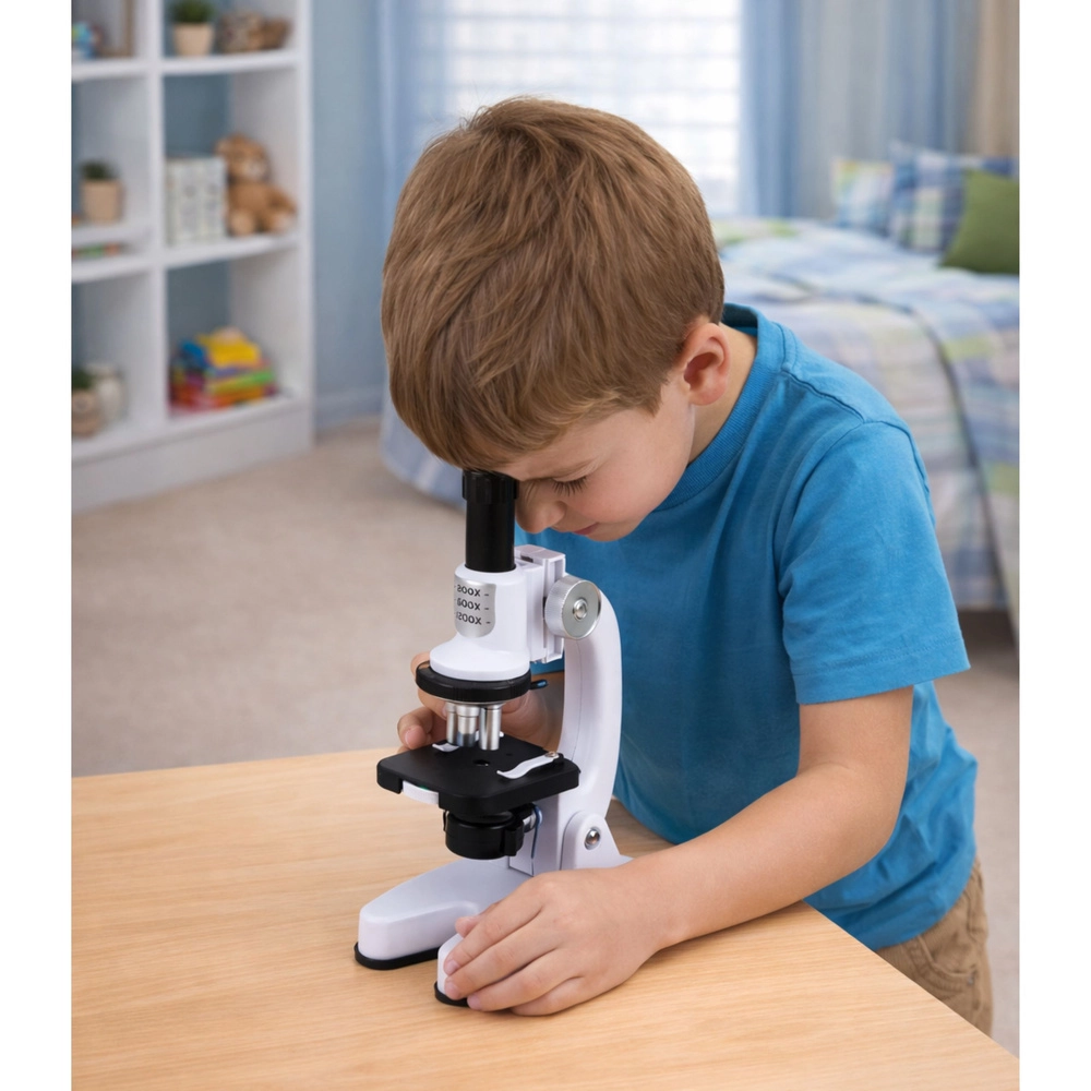 Otroški mikroskop je odličen začetek v svet biologije in mikrosveta. S tremi stopnjami povečave zlahka prilagodite opazovanje vrsti vzorca, medtem ko uravnavanje ostrine zagotovi čist in berljiv prikaz. Odporno ohišje in čvrsta osnova nudita stabilnost pri eksperimentih.