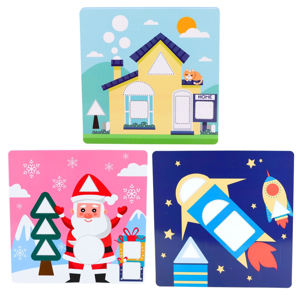 Odkrijte zabaven način učenja s kreativno mozaiko za otroke od 3. leta dalje. Barvite oblike pomagajo razvijati fino motoriko, koordinacijo oko–roka in logično razmišljanje. Otroci lahko sestavljajo po predlogah ali ustvarjajo lastne slike, kar spodbuja kreativnost ter učenje oblik in barv.