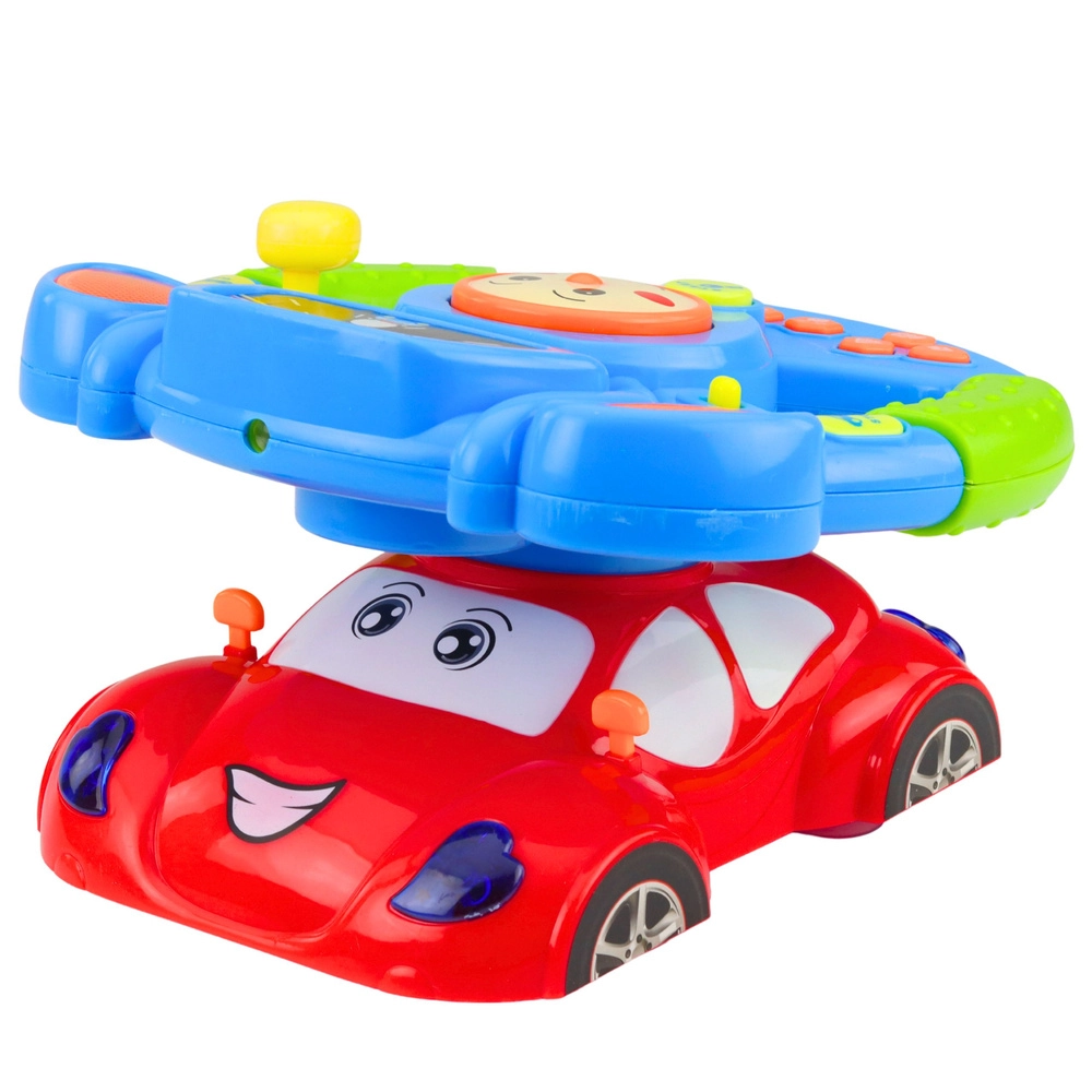 Volan s funkcionalno prestavno ročico, gumbi in svetlobnimi LED učinki otroke povsem pritegne v igro. Zvoki siren, melodije in pesmice podpirajo čutno zaznavanje in domišljijo.
