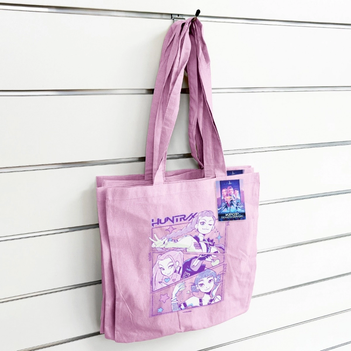 Pokažite svojo strast do K-POP-a in ekipe Demon Hunters s to rožnato bombažno torbo. Odlična je za v mesto, v šolo in na koncert – zlahka jo zložite in jo imate vedno pri roki. Zaradi trpežnega bombaža je primerna za knjige, manjše nakupe in dodatke.
