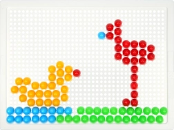Žebljički s premerom 10 mm v živih barvah odlično držijo v trdni plastični podlagi 21 × 16 cm za udobno ustvarjanje.