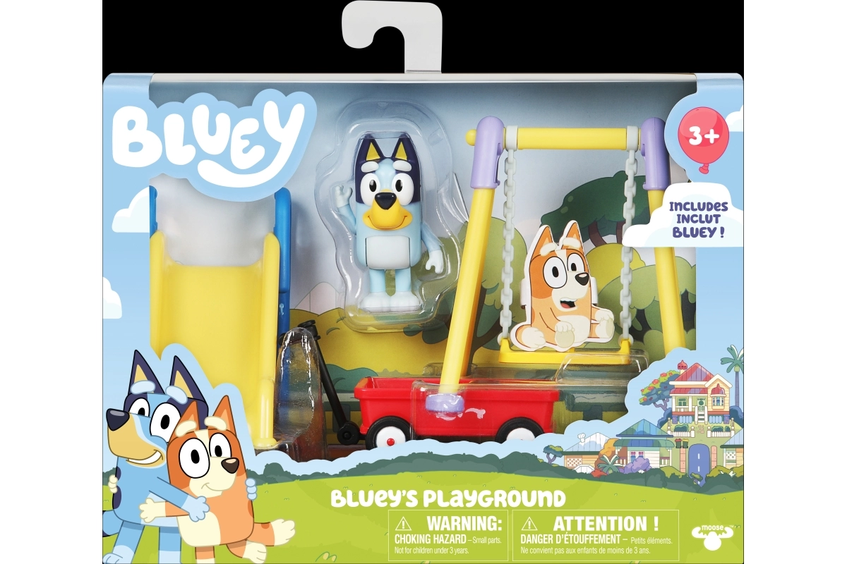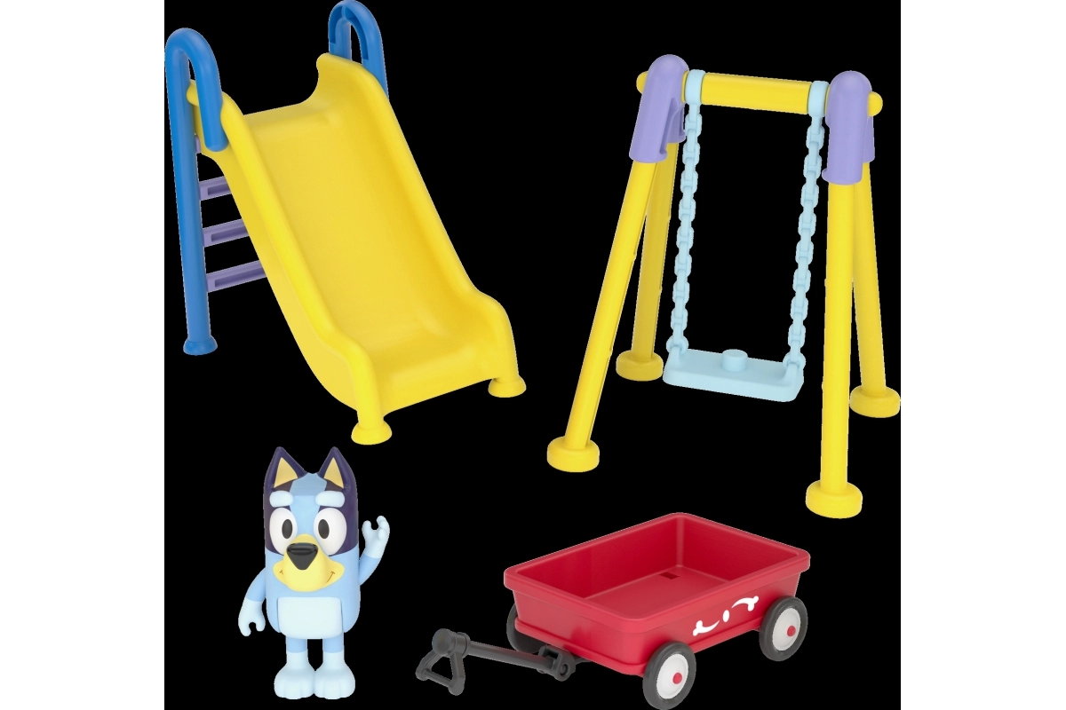 - 1 figurica (Bluey), 1 tobogan, 1 gugalnica, 1 voziček