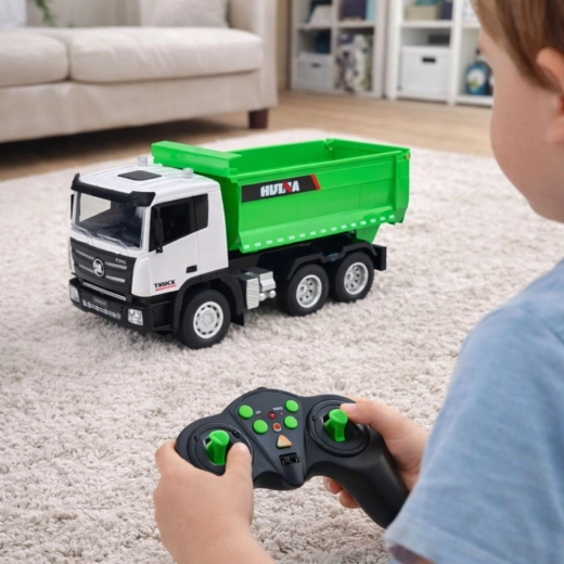Odkrijte vzdržljiv RC tovorni tovornjak HUINA, ki zvesto posnema pravi gradbeni stroj. V merilu 1:18 nudi gladko vožnjo naprej/nazaj in natančno zavijanje, medtem ko daljinsko upravljan prekucni keson zlahka razsuje pesek ali droben prod. Zaradi svetlobnih in zvočnih učinkov je igra izjemno realistično doživetje.