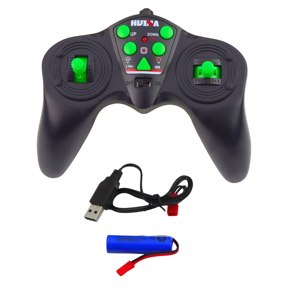 V paketu najdete upravljalnik, USB kabel in akumulator 3,7 V 500 mAh – v upravljalnik vstavite le 2× AA in akcija se začne.