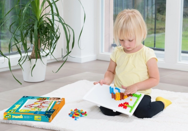 Klasična LENA mozaika s klobučki ponuja neskončne možnosti sestavljanja. Otroci lahko iz barvnih zatičev ustvarjajo preproste in tudi dovršene motive ter pri tem vadijo koncentracijo, koordinacijo oko–roka in zaznavanje barv.