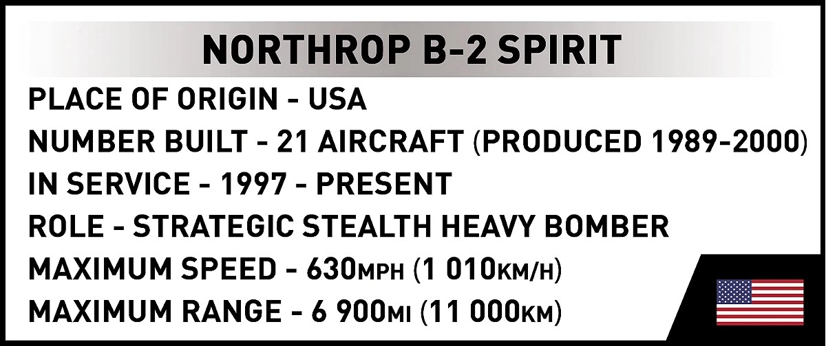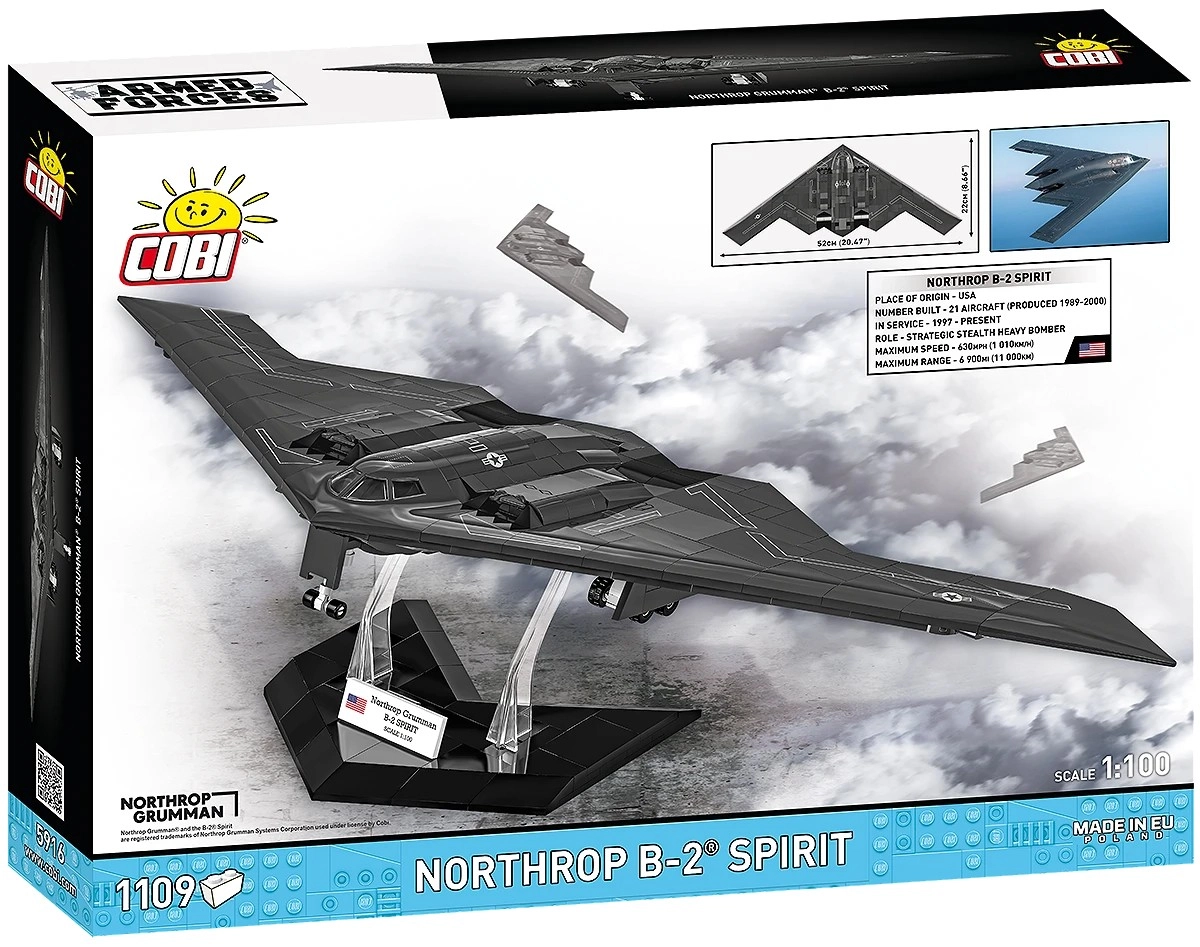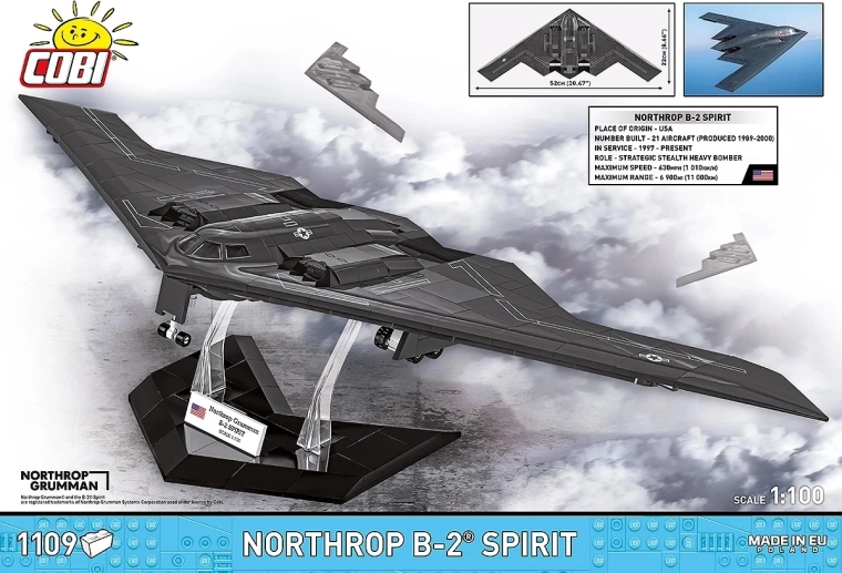 Ustvarite svojo letalsko legendo: NORTHROP B-2 SPIRIT znamke COBI je natančen komplet s odlično konstrukcijsko natančnostjo, ki zvesto poustvari značilni “leteči krilnik” in ravne stealth površine. Zahvaljujoč merilu 1:100 in posebej zasnovanim elementom dobite izrazit razstavni model z impresivnimi detajli.