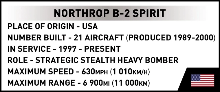 Model ponuja odpirajoč se kokpit, premična kolesa z gumiranimi pnevmatikami in odpirajoč se bombni prostor za 8 bomb tipa Mark 82. V paketu je črno stojalo z dvema prosojnima oporama in elegantna napisna ploščica z imenom, merilom in zastavo ZDA. Kakovostni tiski in nalepke poudarijo realističen videz.