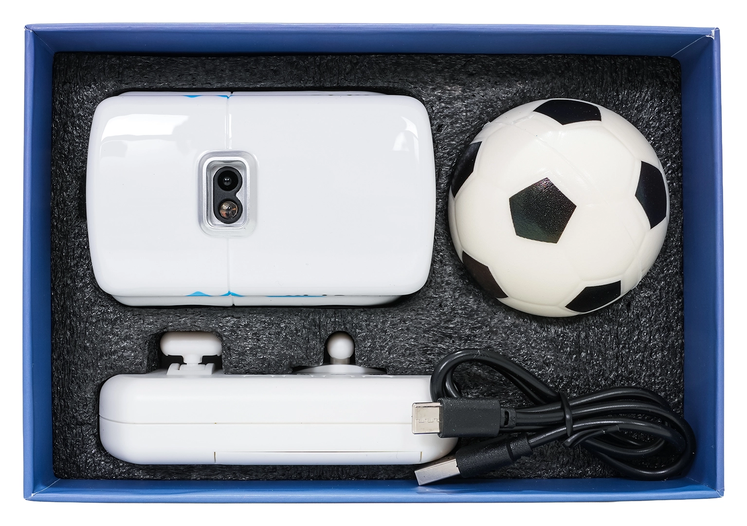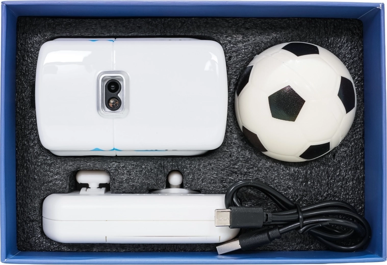 Avtobus zazna ovire, sledi črti in priloženi žogi ter zmore 360° obrate – varna in dinamična vožnja v notranjih prostorih.