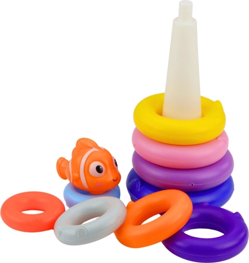 Ta klasična piramida iz obročev je sestavljena iz 10 delov različnih velikosti in živih barv. Otroci nalagajo obroče na stožčasto palico od največjega do najmanjšega, na vrh pa postavijo figurico ribice. Igra naravno razvija potrpežljivost, osredotočenost ter sposobnost razvrščanja in primerjanja.