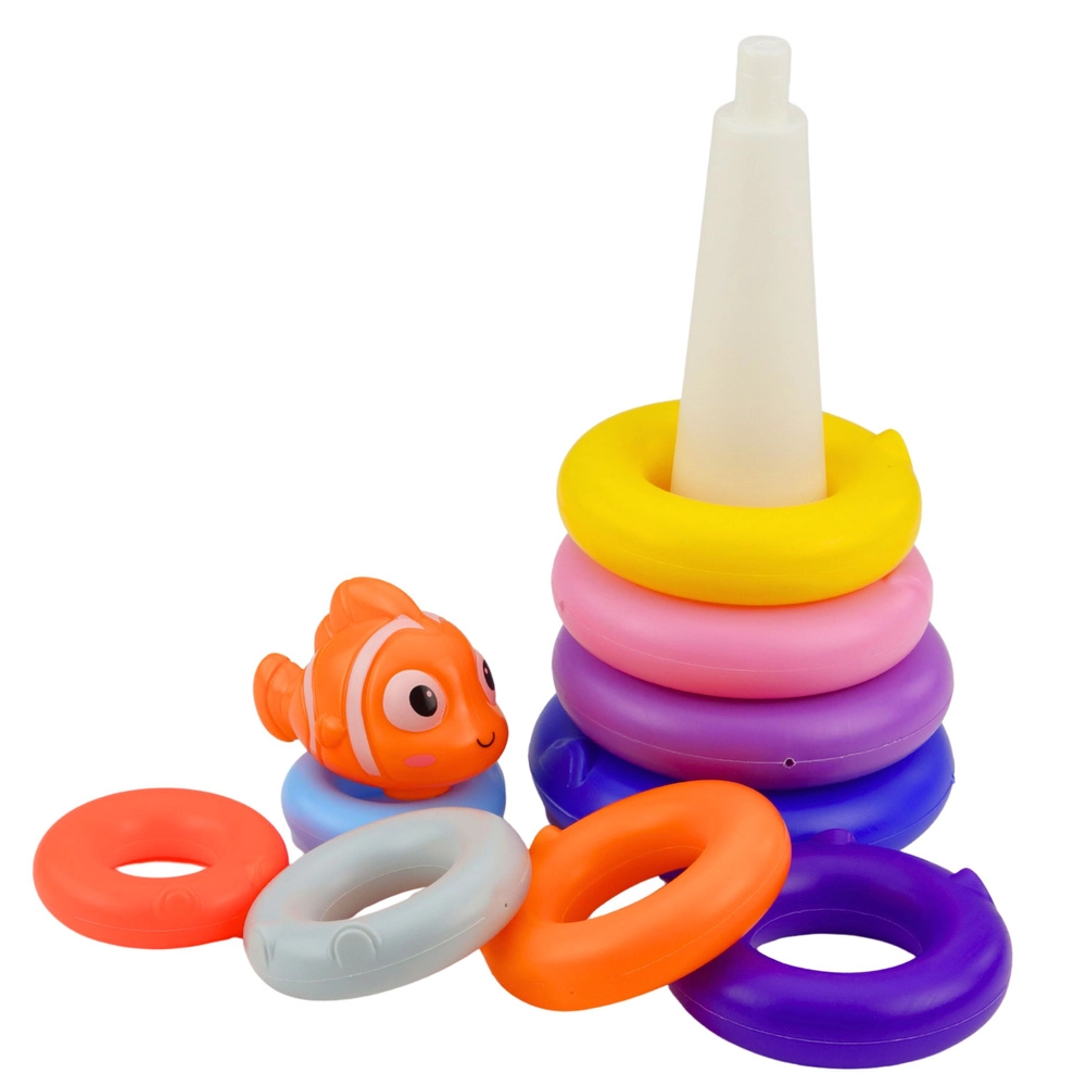 Barvit izobraževalni stolp iz obročev z ljubko ribico združuje zabavo in učenje v enem. Podpira fino motoriko, koordinacijske sposobnosti, prepoznavanje barv in velikosti ter uči logičnega razvrščanja. Lahka in varna plastična konstrukcija z zaobljenimi robovi je idealna za majhne roke.