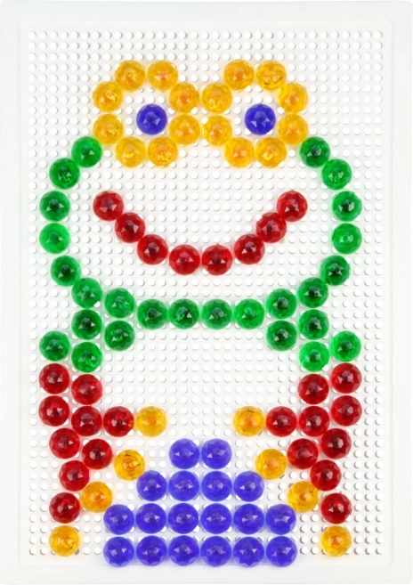 Ta barvita kristalna mozaika omogoča otrokom ustvarjanje izvirnih motivov – od živalic do hišk in prevoznih sredstev. Prosojni zatiči čudovito zasijejo in spodbujajo k nadaljnjemu sestavljanju, medtem ko stabilna mrežasta podlaga vse varno drži na mestu.