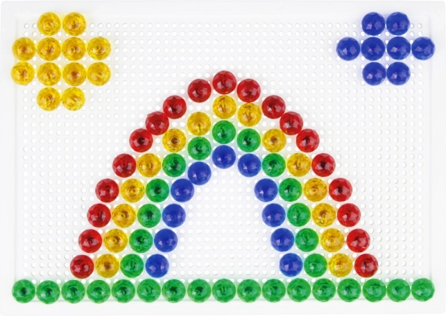 Zatiči s premerom 10 mm urijo prijem, koordinacijo oko–roka in spodbujajo domišljijo pri ustvarjanju lastnih vzorcev brez omejitev predlog.
