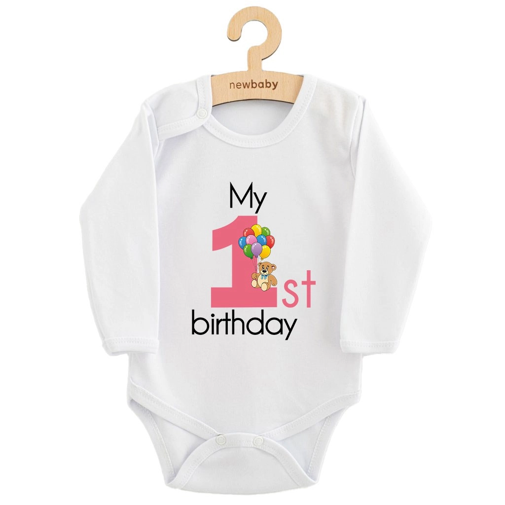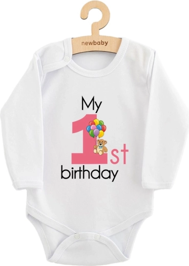 Praznujte prvi rojstni dan v slogu! Otroško bodi New Baby My First Birthday v rožnati barvi je idealna izbira za vsak dan in tudi za slavnostne priložnosti. Mehki 100 % bombaž je nežen do kože in zagotavlja udobje skozi ves dan. Zahvaljujoč pritiskačem na ramenu in v razkoraku je oblačenje hitro in brez solzic.