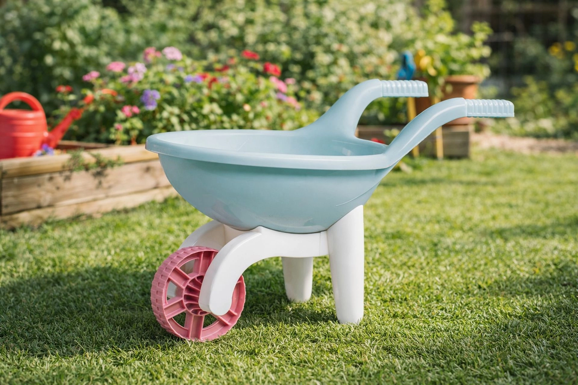 Odkrijte zabavo na vrtu in igrišču z otroško samokolnico iz reciklirane plastike v nežnih pastelnih odtenkih. Zahvaljujoč stabilni tritočkovni zasnovi in širokemu kolesu je prenašanje peska, igrač ali listja za otroke preprosto in varno. Lahka konstrukcija in kakovostna izdelava zagotavljata dolgo življenjsko dobo ter udobno upravljanje.