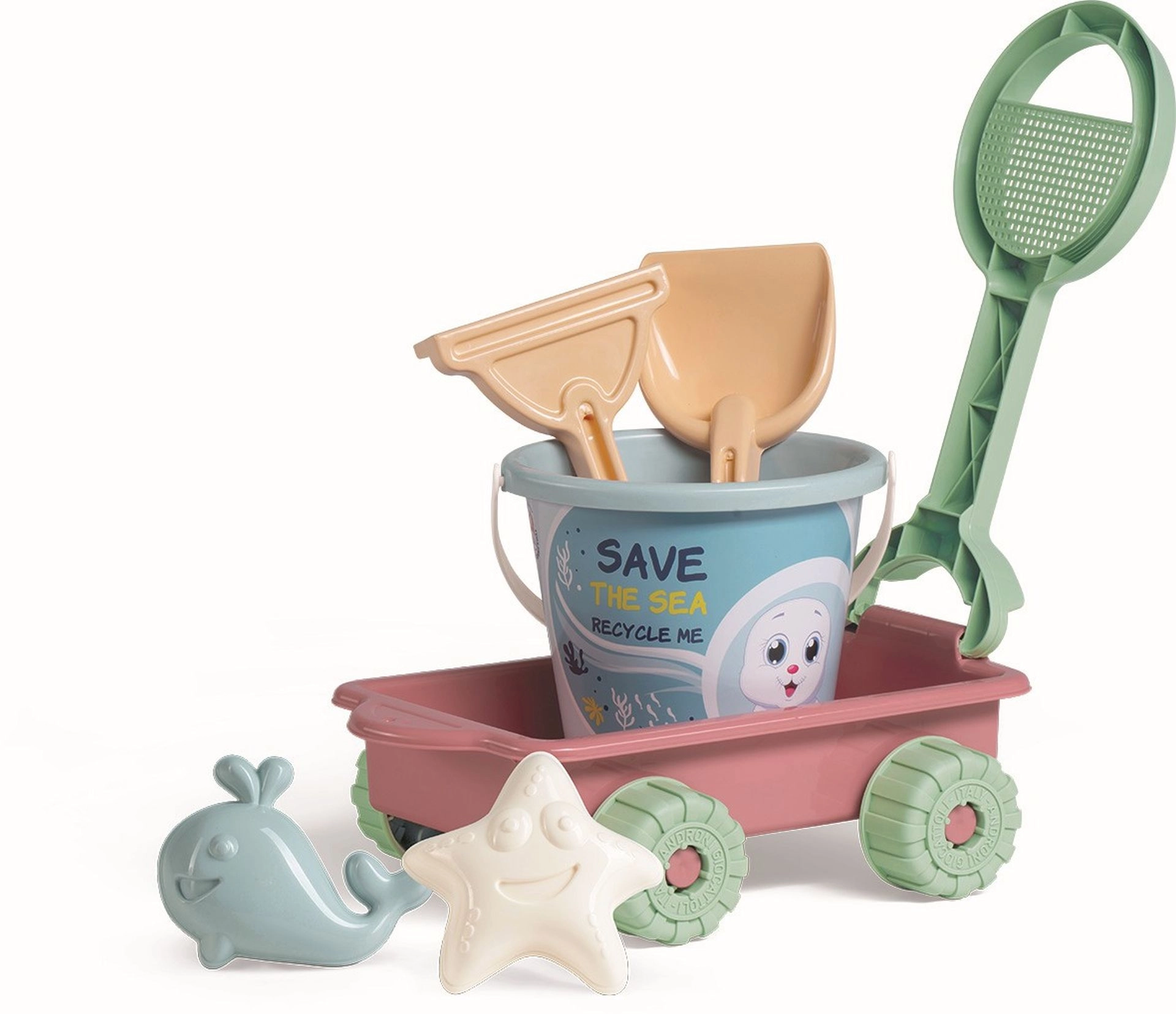 Uživajte v zabavi na plaži in na igrišču s tem pastelnim kompletom za pesek z vozičkom. Vsebuje 6 delov iz kakovostne plastike, izdelane v Italiji: voziček z odstranljivim sitom v ročaju, vedro, lopatko, grabljice ter modelčka ribice in morske zvezde. Idealno za male raziskovalce od 10 mesecev.