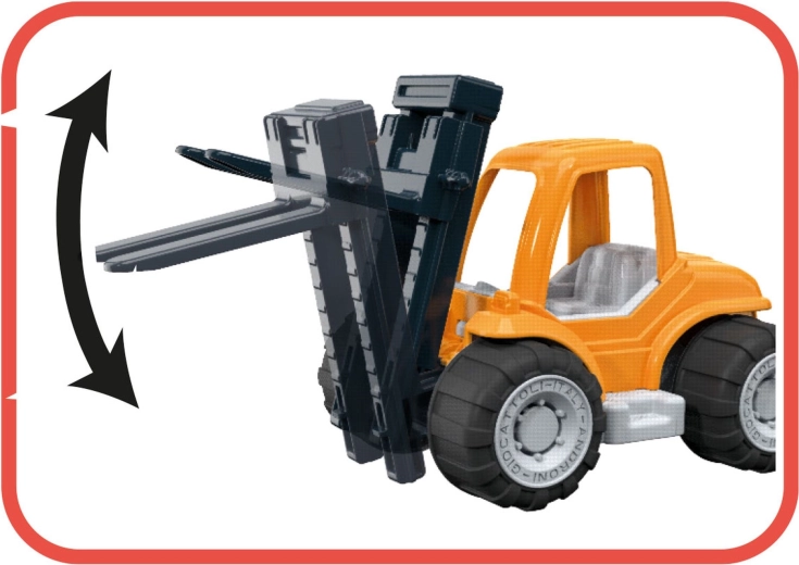 Premične vilice omogočajo otrokom dviganje in prevažanje manjših predmetov ter priloženih blokov, s čimer spodbujajo koordinacijo in fino motoriko.