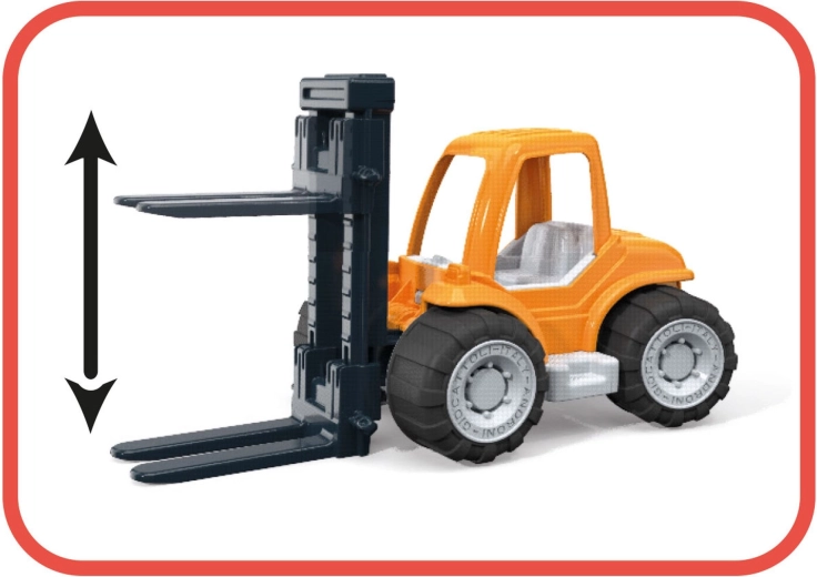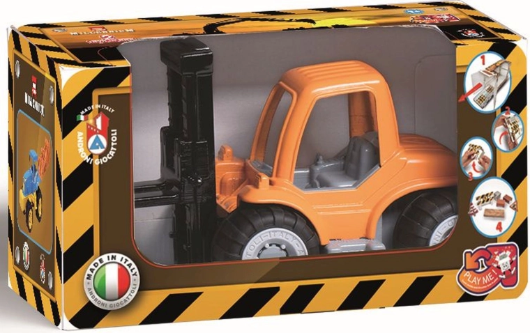 Robusten plastičen viličar iz serije Millennium znamke Androni bo razveselil male graditelje že od 10 mesecev starosti. Ima premične dvižne vilice, gumirana kolesa za stabilnost in je dobavljen z kartonskimi bloki za ustvarjanje igralnih scenarijev. Izdelano v Italiji iz kakovostnih plastik.