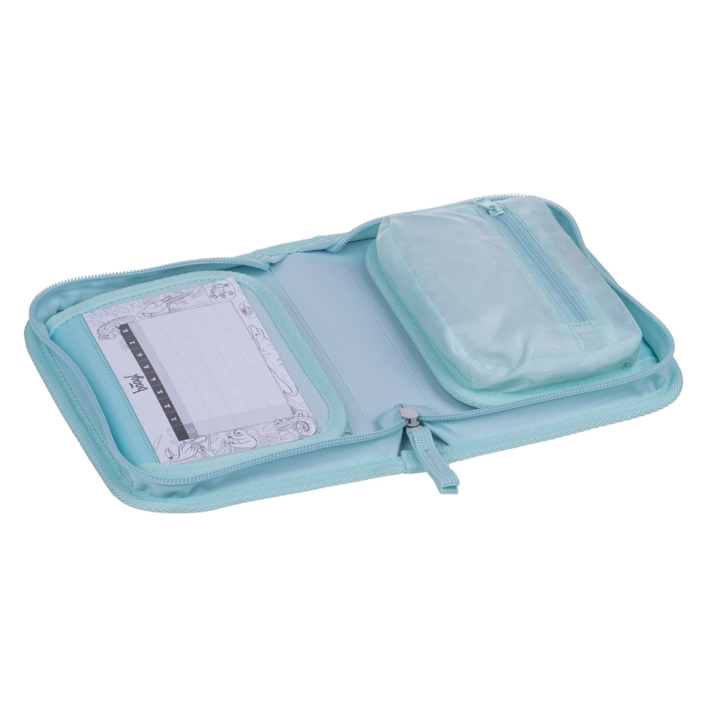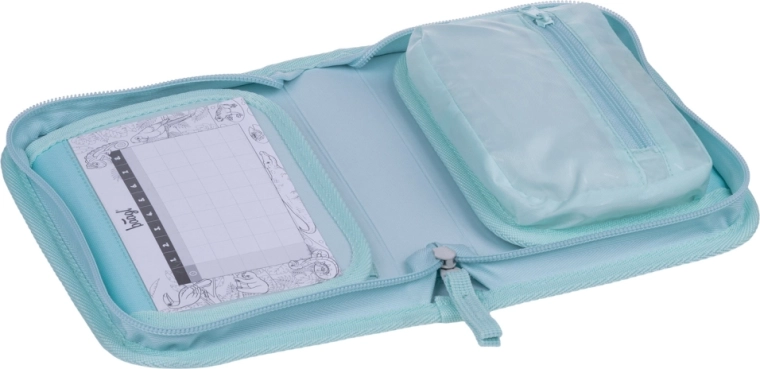 Prostor je zasnovan tako, da sprejme barvice, svinčnike in flomastre, vključno s trikotnimi oblikami. V notranjosti boste našli žepka za drobnarije in praktično okence za urnik. Peresnik je dobavljen brez polnila, njegova izdelava iz recikliranega materiala pa podpira bolj prijazen odnos do narave.