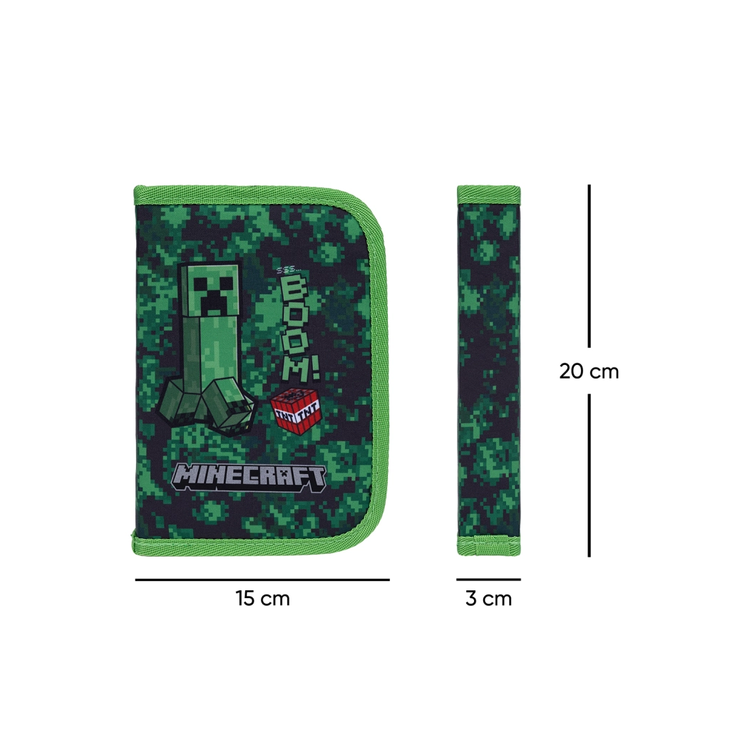Slogovit šolski peresnik z motivom MINECRAFT Boom ponuja praktično enonadstropno zasnovo z dvema zavihkoma, vzdržno zadrgo YKK in pregledno razporeditev. V notranjosti boste našli žepček za drobnarije, okence za urnik in čvrste elastike, združljive tudi s trikotnimi barvicami in flomastri. Peresnik je brez polnila in izdelan iz recikliranega materiala.