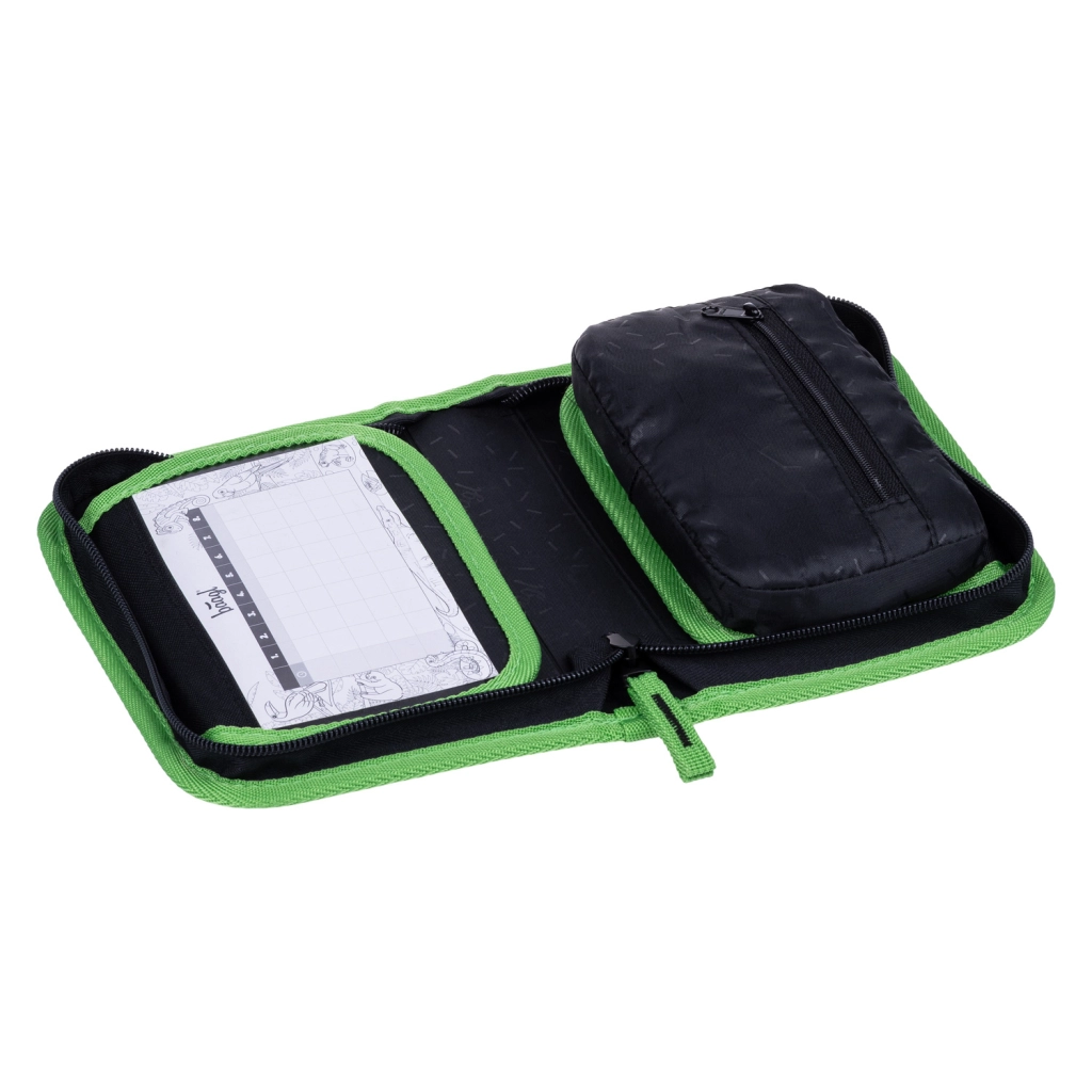 Kakovostna zadrga YKK zagotavlja dolgo življenjsko dobo tudi pri vsakodnevni uporabi. V notranjosti najdete žepček za drobnarije, okence za urnik in čvrste elastike, ki varno držijo tudi trikotne barvice in flomastre. Peresnik je dobavljen brez polnila in je izdelan iz recikliranega materiala – prijazna izbira za starše in planet.