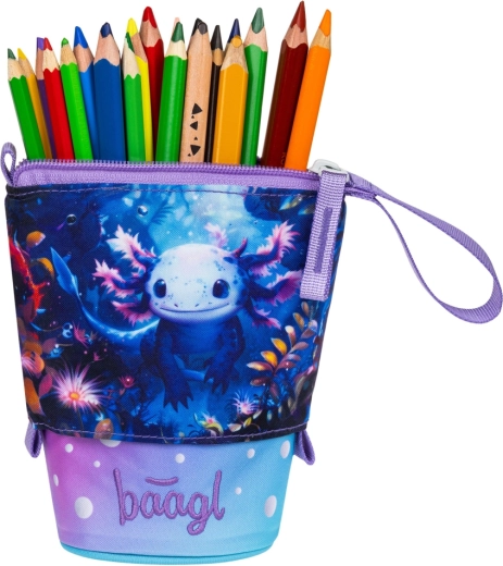 Sodobna in trpežna šolska peresnica Pastelkovnik BAAGL z motivom Axolotla združuje moderen dizajn, trajnostne materiale in največjo praktičnost. Ponuja čvrst, vodoodporen material, pregledno organizacijo pisal in pametno stojalo z enim potegom. Ne manjka skriti notranji žep in certifikat GRS, ki potrjuje delež recikliranih materialov.