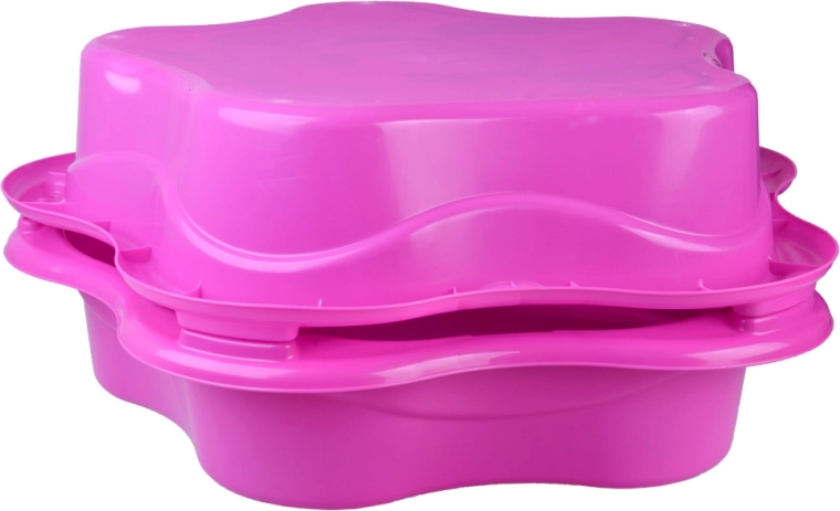 Univerzalno 2v1 – ena polovica služi kot peskovnik, druga kot plitek bazenček. Po zaprtju nastane praktičen pokrov, ki ščiti vsebino pred dežjem, listjem in živalmi. Zaradi lahke, a čvrste konstrukcije se školjka zlahka prenaša in hitro pripravi za igro.