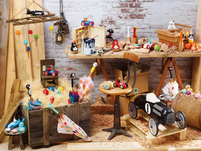 Retro poganjalec VILAC v črni kovinski barvi prinaša otrokom veselje do gibanja, staršem pa mir zaradi robustne izdelave. Celo kovinsko ohišje, realističen volan in široka kolesa zagotavljajo stabilnost, vzdržljivost in lahko manevriranje tudi na trdih površinah. Odličen za razvoj grobe motorike, ravnotežja in samozavesti pri prvih samostojnih vožnjah.