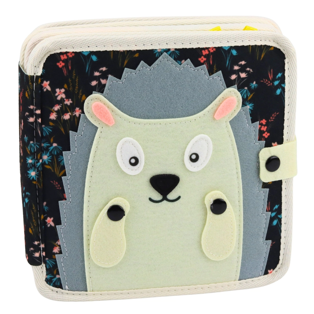 Ta tekstilna tiha knjiga je zasnovana za male radovedneže, ki radi tipajo, preizkušajo in odkrivajo. Mehek, varen filc je prijeten na dotik, barvite strani z reliefnimi aplikacijami pa vabijo k interakciji. Zahvaljujoč premičnim delčkom, zadrgam, kroglicam in elementom za premikanje otroci urijo prstke in zbranost.