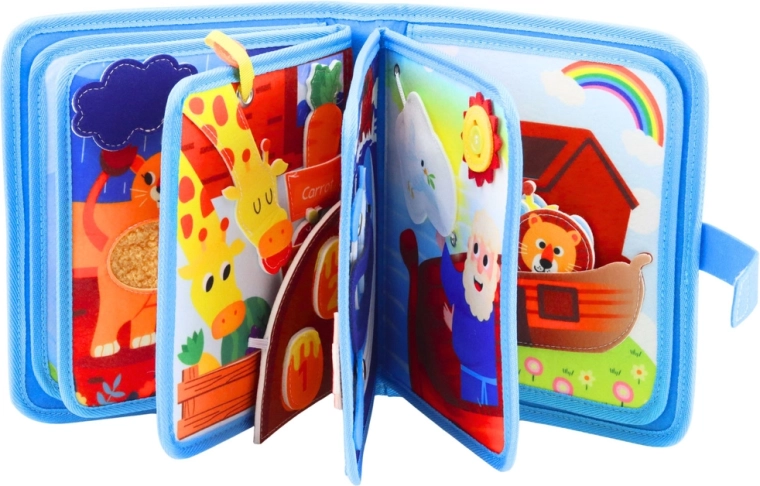 Ta mehka in trpežna filcana knjižica s svežim, barvitim dizajnom predstavlja živalice in prizore iz Noetove barke. Otroci lahko preklapljajo, premikajo in povezujejo posamezne delčke ter tako nežno urijo koordinacijo oko–roka, logično razmišljanje in pozornost. Varna izvedba brez trdih robov je kot ustvarjena za majhne rokice.
