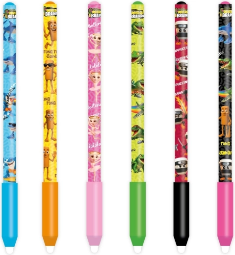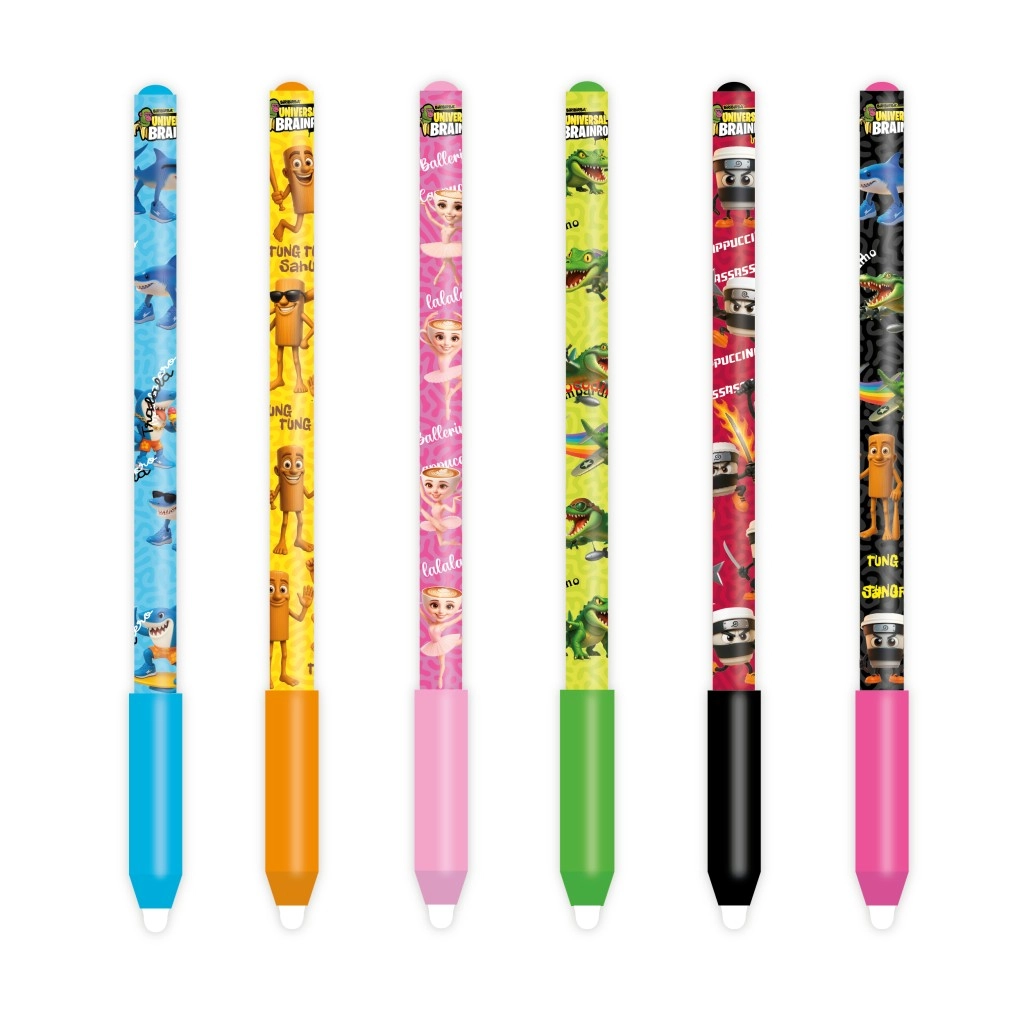 Odkrijte zabavno izbrisljivo pero s tematiko Italian Brainrot – serijo nadrealističnih internetnih memov, ki so osvojili TikTok in Instagram. Pero piše tekoče, zahvaljujoč posebnemu črnilu pa ga lahko enostavno izbrišete brez poškodovanja papirja.