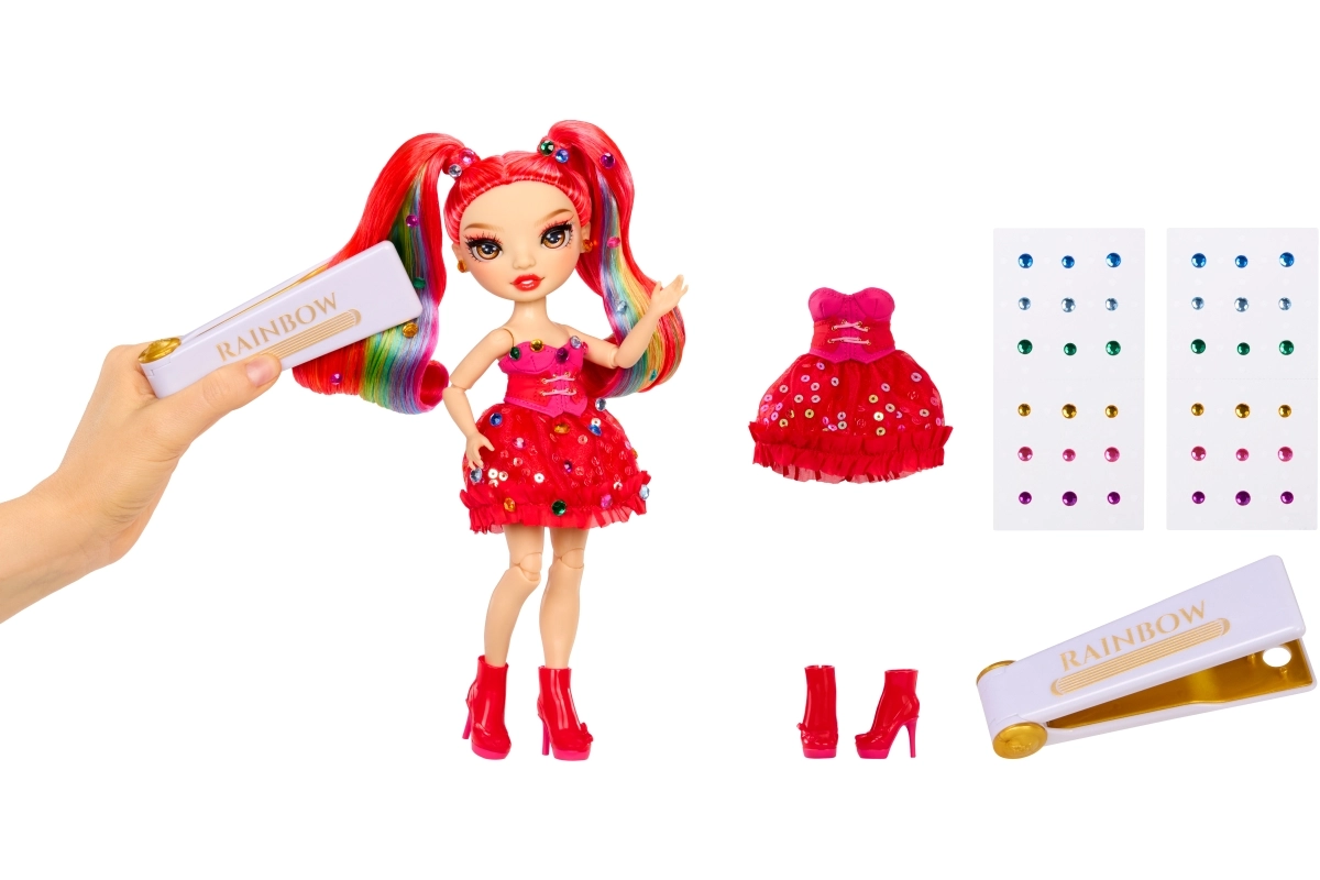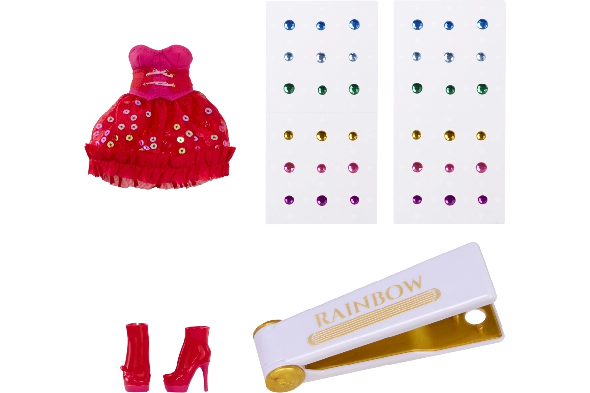S priloženim orodjem Rainbow High lahko hitro in preprosto naneseš barvite kamenčke na lase ali oblačila ter v hipu ustvariš edinstven glam videz. Ta komplet spodbuja ustvarjalnost, samozraznost in razvoj fine motorike — idealno darilo za male stilistke in zbirateljice.