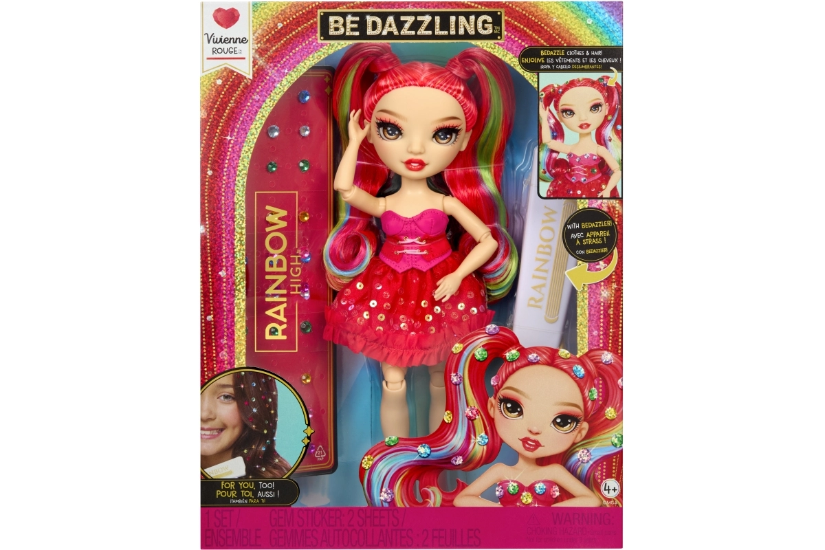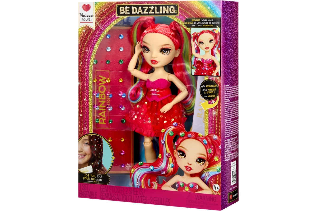 Punčka Rainbow High Vivienne Rouge prinaša v tvojo zbirko izrazito rdečo energijo in modo, navdihnjeno s spektrom mavrice. Njeni dolgi, razčesljivi lasje z mavričnimi prameni, bleščeča obleka in ujemajoči se čevlji omogočajo ustvarjanje impresivnih kombinacij za igro in razstavljanje. Zahvaljujoč sklepom v rokah, nogah in glavi jo zlahka nastaviš v različne poze.