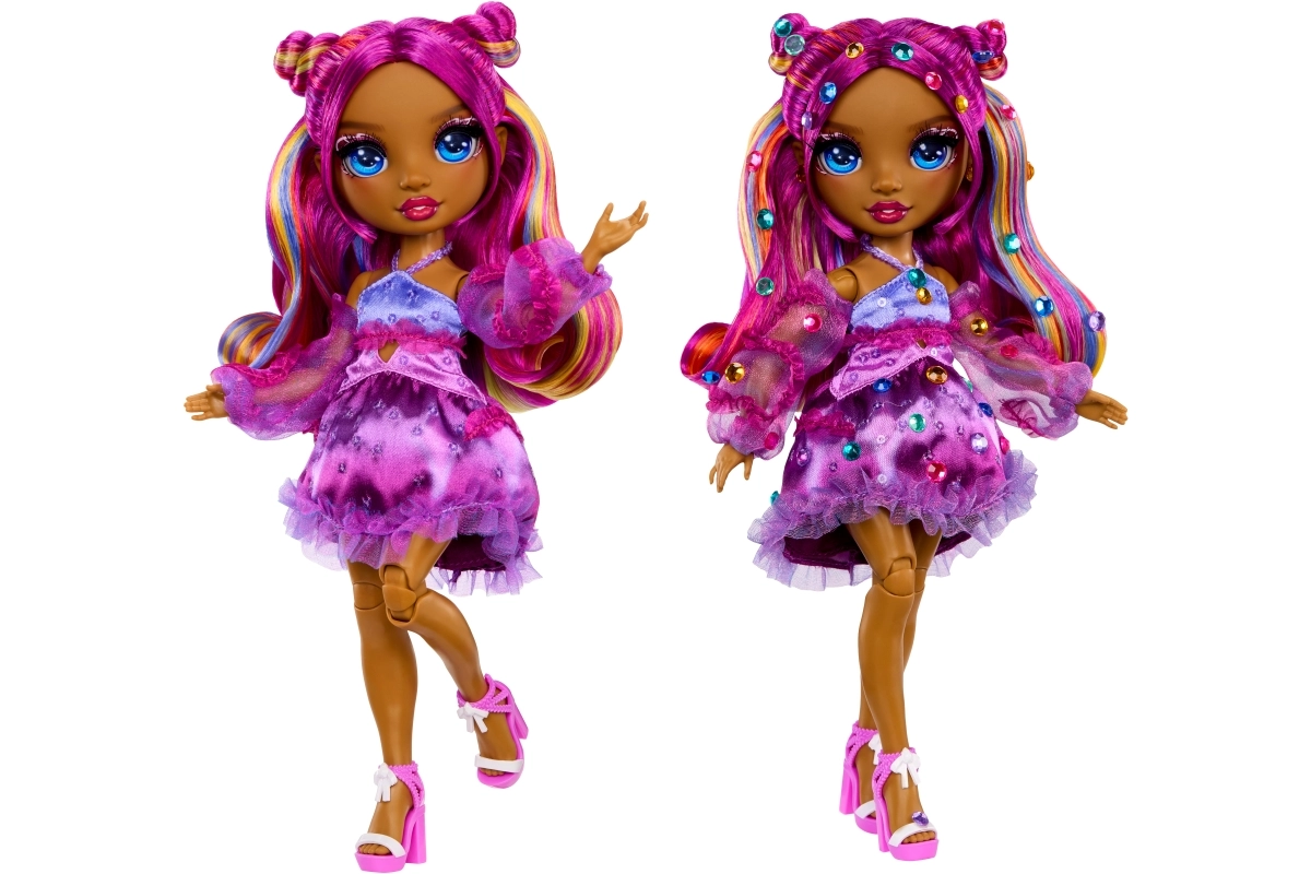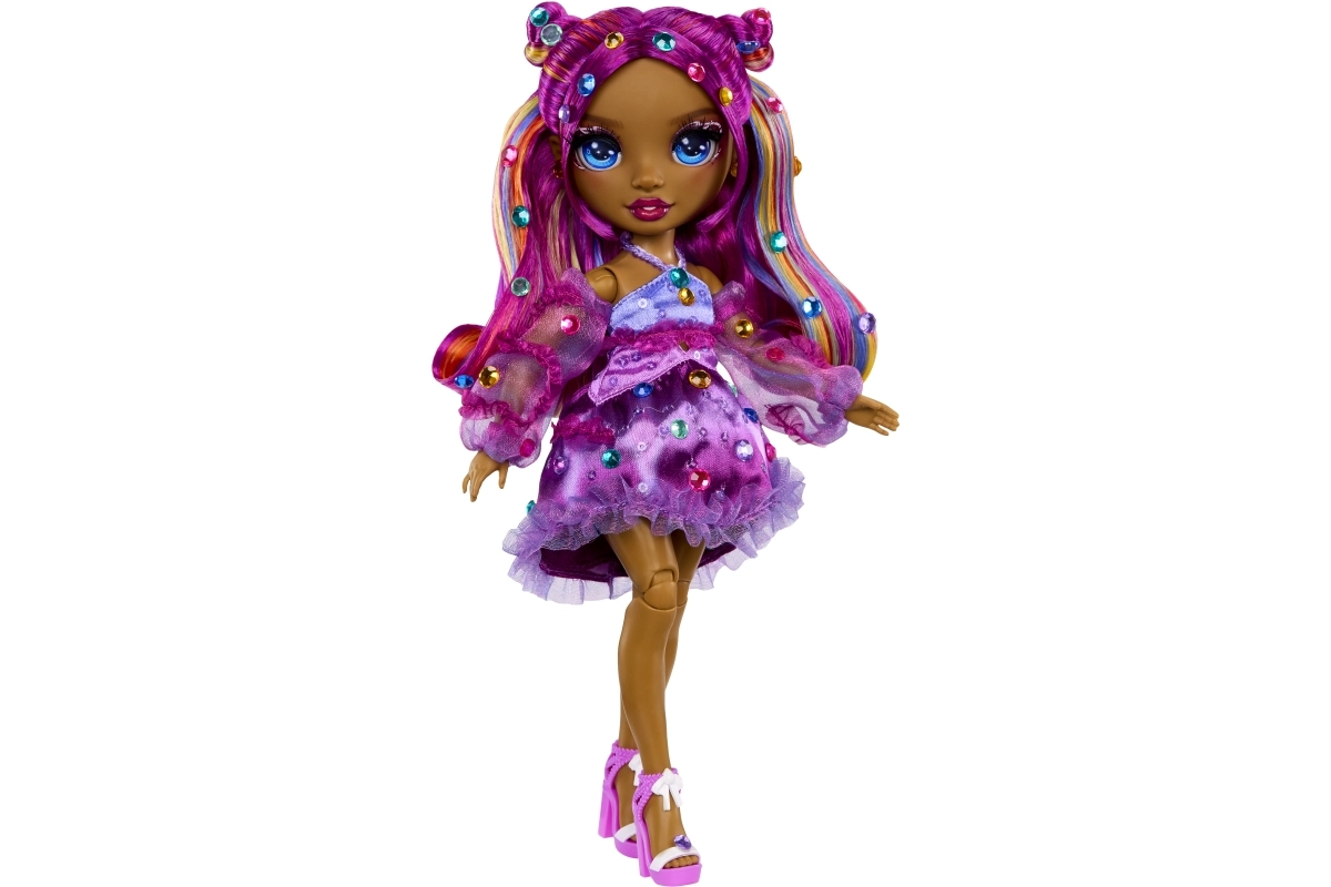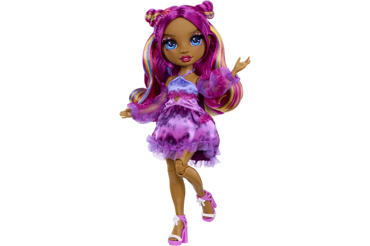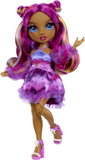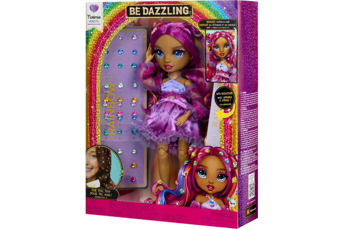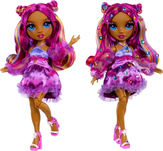Punčka Noemie Violette prinaša v svet RAINBOW HIGH izrazito vijolično stilizacijo, dovršen make-up in outfit z volančki, ki bo navdušil vse ljubiteljice modnega igranja. Zahvaljujoč artikulaciji v kolenih, komolcih in zapestjih je idealna za poziranje in ustvarjalno fotografiranje.