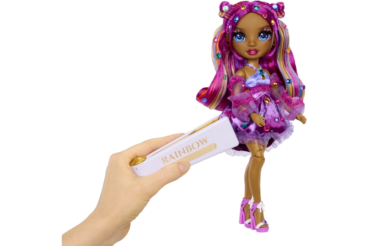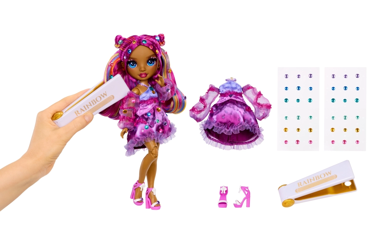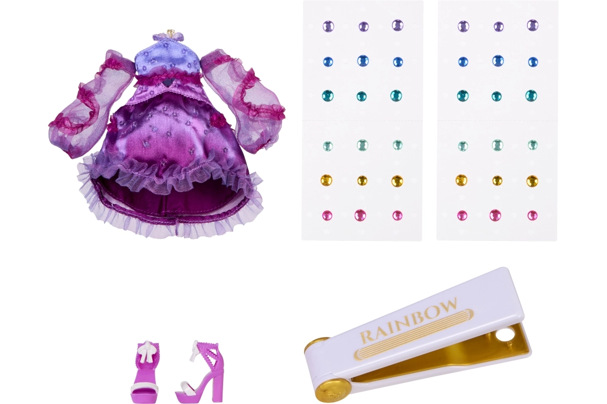 S krimpalnim orodjem RAINBOW zlahka naneseš barvne kamenčke v lase punčke in na njeno obleko za bleščeč videz.